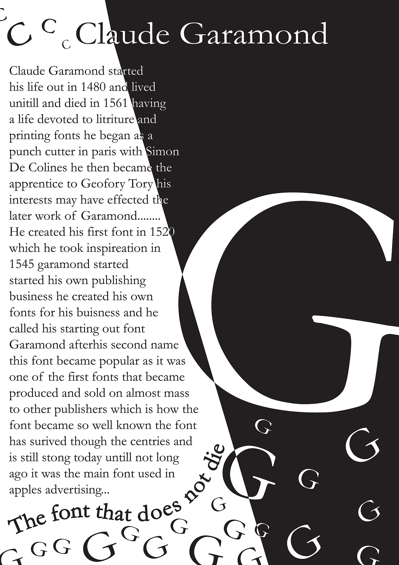 영어 타이포그래피는 구텐베르크 시절까지 거슬러 올라갑니다. (구텐베르크의 인쇄술에 관해서는 다시 멋진 일주일 21호에 자세히 적혀 있습니다. 우리나라에서 얻기 어려운 희귀자료가 있으므로 활자와 인쇄산업을 이해하는 데 큰 도움이 됩니다) 그때가 1439년 무렵입니다. 클로드 가라몽(Claude Garamond 1510~1561) 이라는 이름의 활자 디자이너 할아버지가 있었어요.