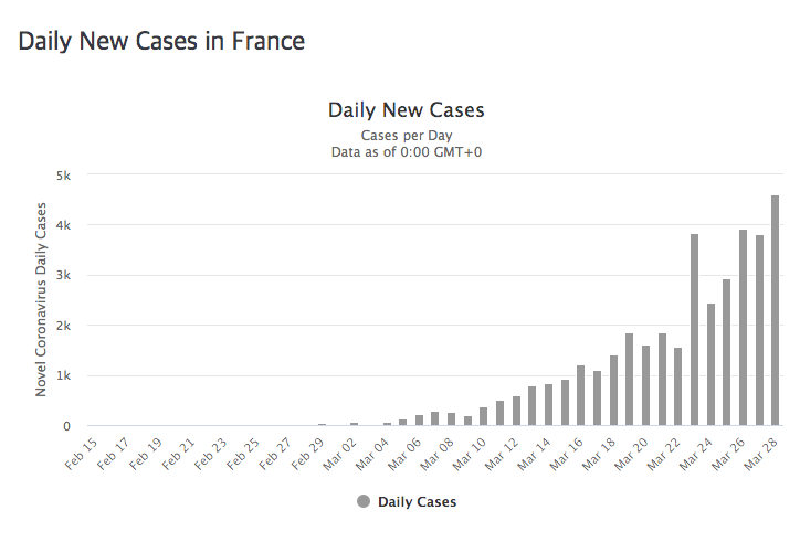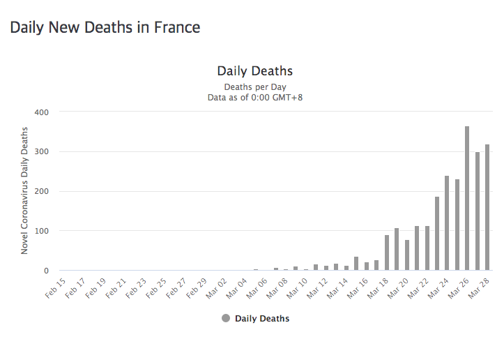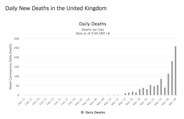 일일 사망자도 점점 커지고 있습니다. 이탈리아와 스페인에 비할 비는 아니지만 증가세가 무섭습니다. 3월 28일에는 무려 260명이 사망했습니다.