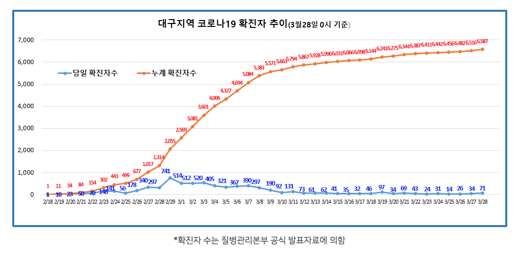 우리나라 정부, 의료진, 국민들, 다 같이 대단합니다. 부족했던 애국심도 커지는 시절입니다. 통계를 살펴보다가 대구 시민들이 코로나19에 맞서 대단한 성과를 보여주고 있음을 알게 되었습니다. 대구가 계속 아프니까 못마땅하게 생각하시는 분도 많습니다만, 데이터는 그런 생각과 다른 내용을 보여줍니다.