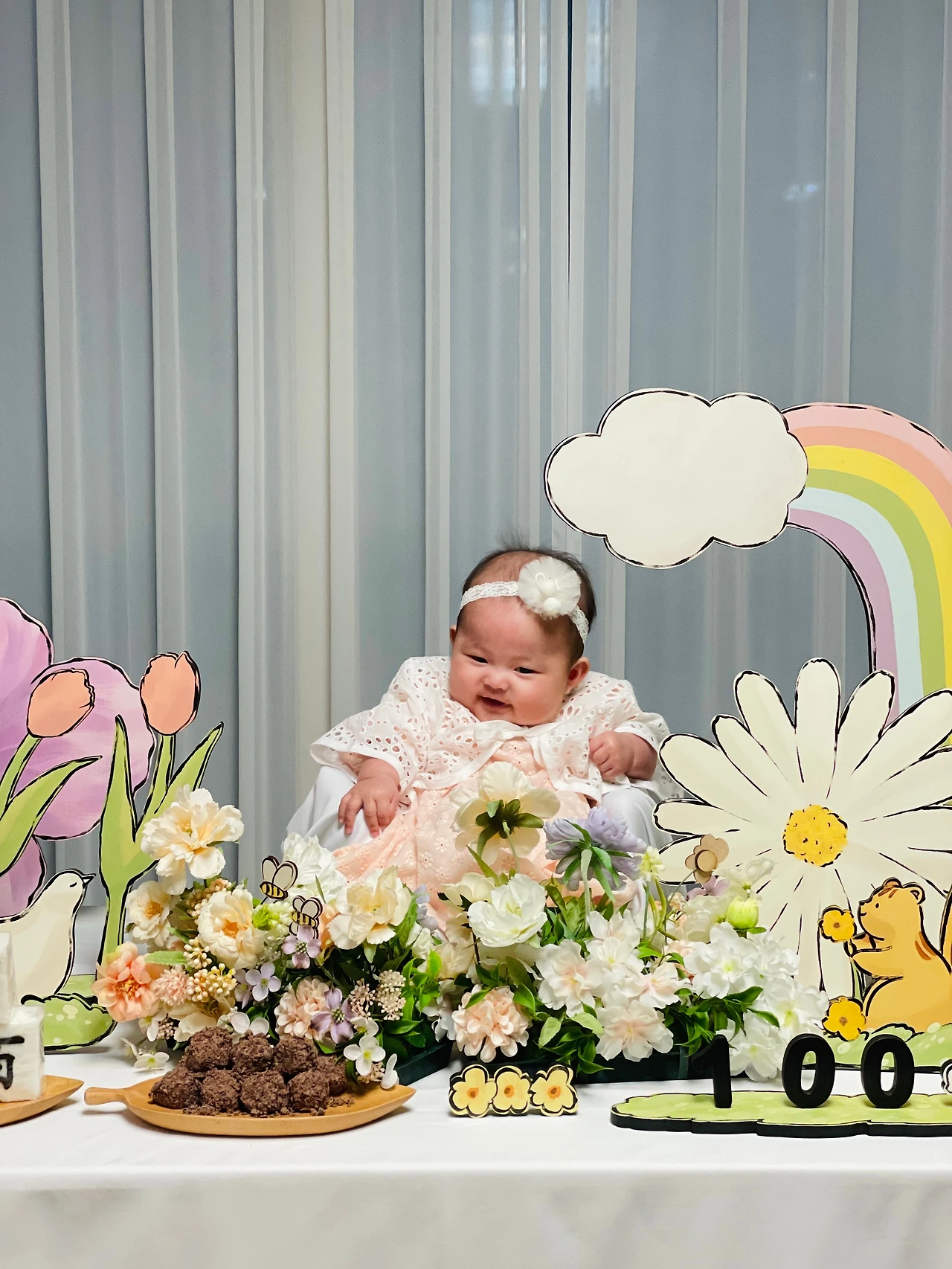 그리고 맞이하게 된 둘째의 100일 행사는 첫째와 마찬가지로 본가와 처가댁으로 2번에 나누어 똑같이 실시했다. 첫째, 둘째 구별하지 않고 식순과 대여 물품, 규모는 첫째의 그것과 비교했을 때 전혀 모자라지 않도록 해주었다. 불과 1년 반적에 했던 일인데도 불구하고 처음 하는 것처럼 묘한 감동과 아련함이 동시에 가슴 한 곳에 자리 잡은 순간이었다. 대여 의상이 첫째의 그것과 비교했을 때 좀 더 따뜻하고 포근한 느낌을 가져다주었는데 확실히 여자 아기의 옷이 더 가짓수도 많고 퀄리티도 좋다는 생각을 했던 기억이 있다. 첫째는 작년에 자신이 주인공이었던 것을 아는지 모르는지 연신 행사 테이블 주변을 돌아다니며 기쁨을 감추지 못했다.
