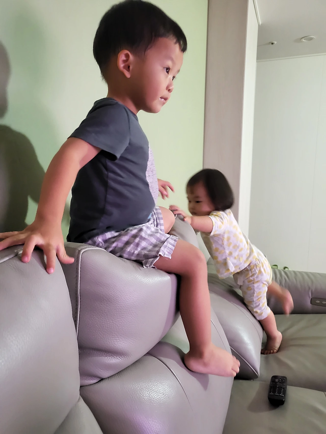 차에서 재충전의 시간을 아주 알차게 보냈는지 밤늦게까지 컨디션이 쌩쌩했다. 둘 다 오늘의 활동을 복습이라도 하듯 소파 위를 정글짐처럼 열심히 오르락내리락 거린다. 이제 제법 둘 다 키즈카페를 각자의 생각과 니즈에 맞게 자유롭게 이용하는 모습을 보인다. 시간이 좀 더 흐르면 더 창의적이고 전술적으로 재미있게 놀 수 있겠구나라는 생각을 해 보았다.