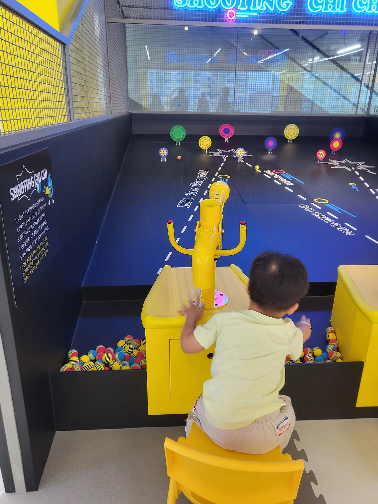 입장 비용이 다소 비싼데 비해 음식값은 나름 합리적이었다. 이런 키즈카페에서 보통 피자 한 판이 2만 원, 단품 메뉴가 1만 2천 원 정도로 책정되는데 그보다 30%가량 저렴한 가격이었다. 피자는 나오는데 2-30분가량 소요될 거라 하여 기다리는 동안 다른 액티비티도 체험하고 오기로 했다. 아이들은 대포 슛 게임과 카트 라이딩을 체험하는 것을 제일 좋아했다. 슛 게임은 무엇보다 공이 아기자기하고 알록달록하여 아이들의 시선을 사로잡기에 좋았다. 카트 라이딩은 뭐 말할 것도 없이 키즈카페 최고 인기 어트랙션이니 무슨 설명이 더 필요할까.