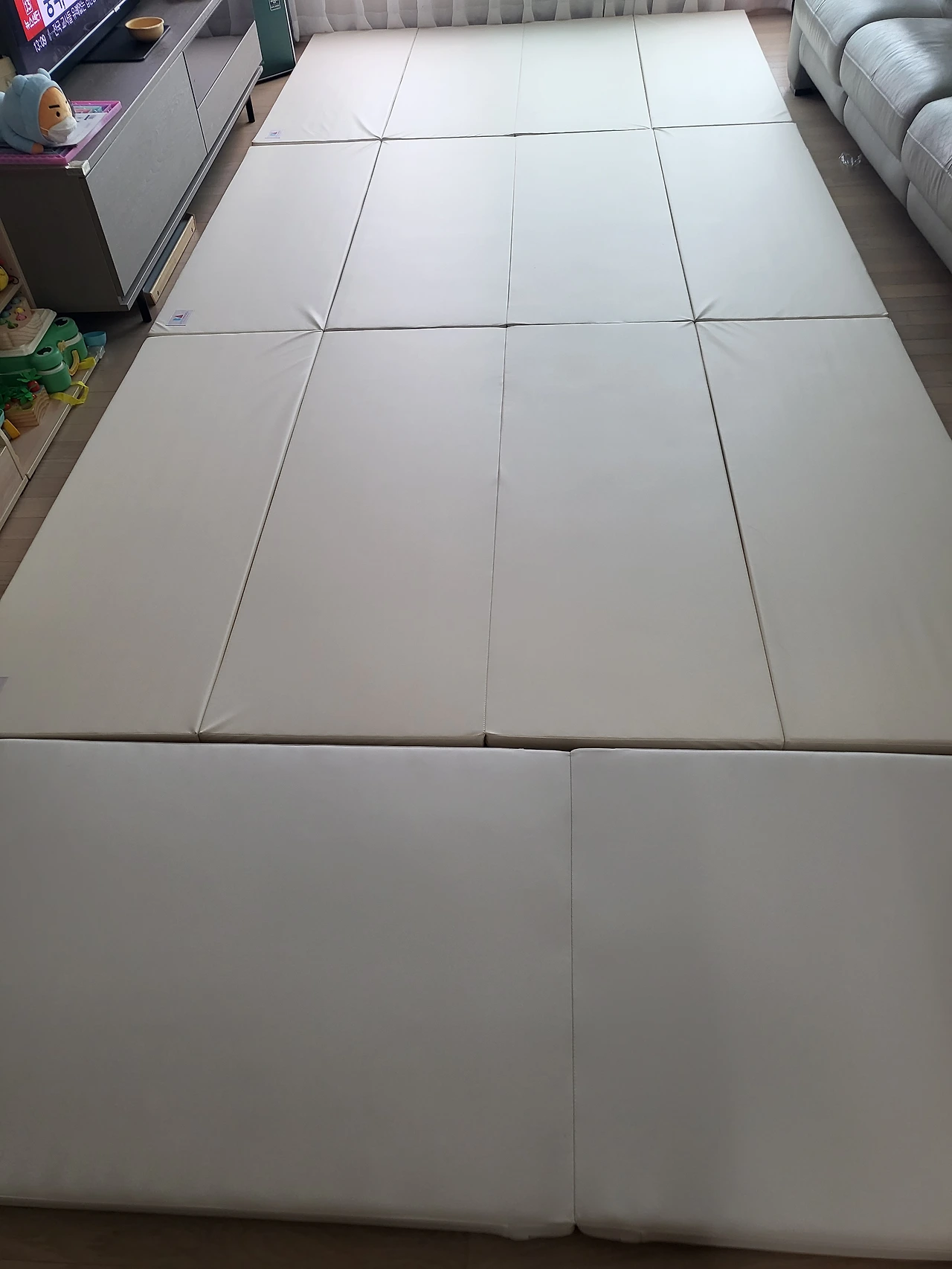 퇴근하고 돌아오는 데 현관문 앞에 거대한 박스가 떡 하니 자리 잡고 있었다. 엊그제 아랫집에 거주하시는 분께서 층간소음 문제로 본인 가족들이 힘들어하고 있다고 말씀하셨던 것이 떠올랐다. 그동안 나름 슬리퍼도 신고 다니고 침대나 소파에서만 아이들을 뛰게 해서 괜찮다고 생각했는데 그게 아니었던 것이었다. 그래서 죄송한 마음을 담아 거실만이라도 꼼꼼하게 층간소음 방지매트를 깔기로 했는데 이렇게 빨리 배송이 와 있을 줄은 몰랐다. 쇠뿔도 단김에 빼랬다고 바로 매트를 설치하기로 했다.