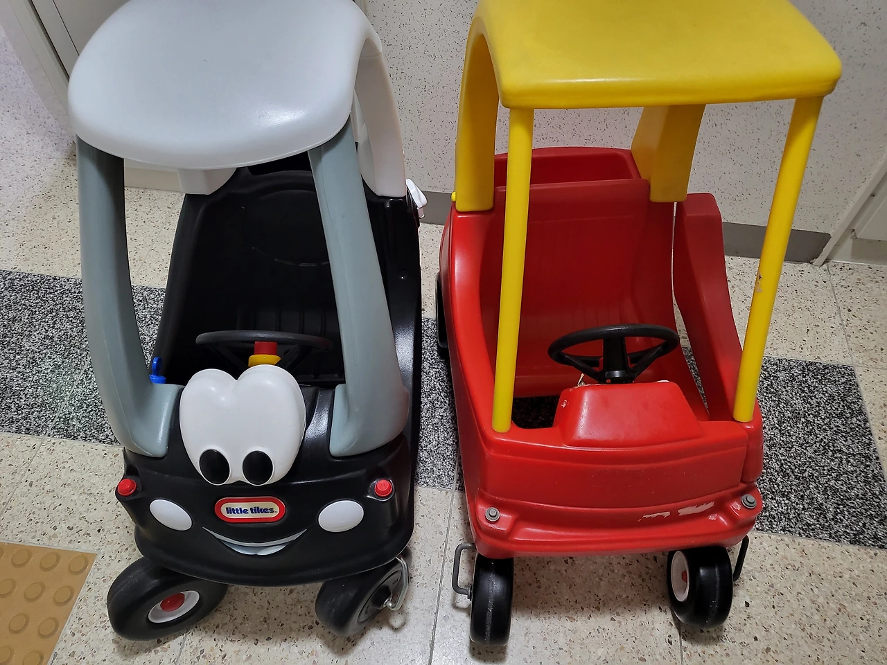 매트를 깔면서 혹시라도 매트를 뚫고 소음을 일으킬 수 있는 아이템이 없나 살펴보았다. 그러다 창가에 늘 지정주차되어 있는 아가들의 '미니 쿠페' 들이 눈에 들어왔다. 첫째와 둘째의 애마이자 걸음마하기 전부터 가지고 놀았던 추억의 깃든 장난감이라 임의판단으로 처분하기 어려웠다. 그래서 아가들이 하원하기를 기다렸다가 조심스럽게 물어보았다.