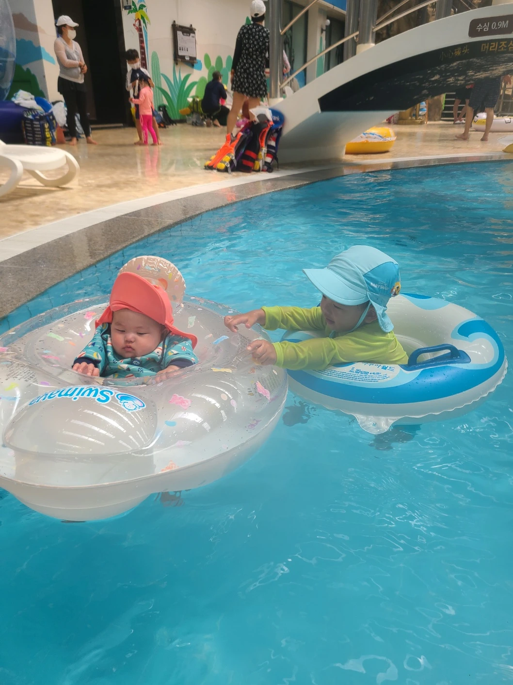 아기 상어 호텔은 호텔 측에서 가족 단위의 손님들을 위해 객실 일부를 아기상어 굿즈와 침구류로 리뉴얼해 만들어 놓은 공간이다. 성수기에는 예약이 힘들 정도로 인기가 많은 곳인데 8월을 넘어가니 조금 예약이 수월하여 방문하기로 했다. 로비에서부터 들뜬 모습을 감추지 못한 첫째는 생각지도 못한 아기상어의 등장에 몹시 흥분해서 객실과 복도 이곳저곳을 뛰어다녔다. 유모차에 누워만 있는 둘째도 몸을 들썩거리는 거 보니 아기상어의 존재를 인식한 것이 분명해 보얐다. 그렇게 아기상어 호텔에서 조식도 먹고, 물놀이도 하며 온전히 4 식구만의 호캉스를 만끽하였다.