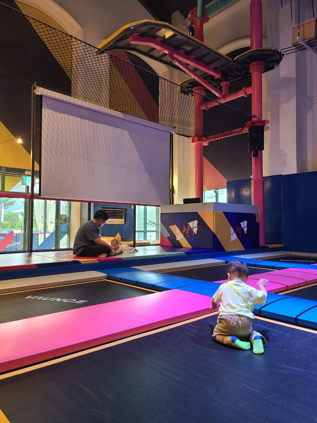 규모가 상당히 큰 리조트인 데다 겨울에는 스키장까지 겸해서 운영하는 곳인 만큼 즐길 수 있는 부대시설이 상당히 많았다. 그리고 아이들이 혹시라도 객실에서 잠들기 힘들어할 때 유모차 산책을 하기 아주 적합할 정도로 넓은 부지를 확보하고 있어 좋았다. 수영장뿐만 아니라 트램펄린 놀이시설도 함께 있어 아가들을 모두 데리고 이용할 수 있었는데 엎드리고 누워있는 것 밖에 할 수 없는 둘째조차도 트램펄린을 온몸으로 체험하는 모습을 보고 꽤 깊은 감명을 받았던 때이다. 머무르던 3일 내내 둘째가 새벽 3시, 5시마다 깨서 여러 모로 숙면은 힘들었지만 그래도 조식 뷔페식으로 일반식과 이유식 혼용이 가능했던 시기라 여행이 훨씬 수월했던 것 같다.