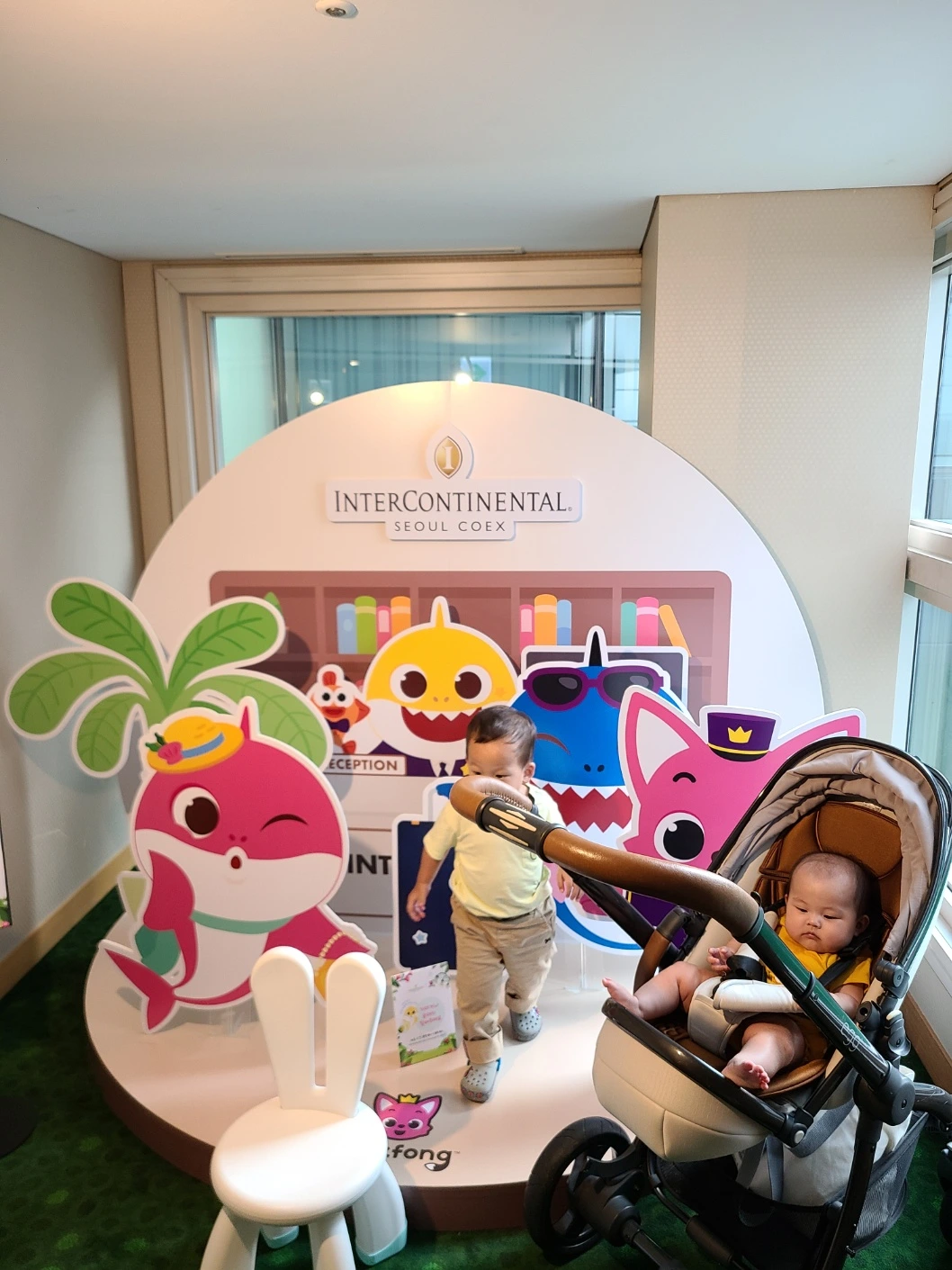 지난 5월에 선물 받은 킥보드를 이제야 제대로 즐길 줄 아는 첫째와 생후 6개월이 다가오자 쏘서를 즐기는 둘째의 모습에 시간 가는 줄 모르고 육아에 전념하던 나날이다. 7월은 사회성 기르기 차원에서 다른 가족들과 만나는 시간을 주로 가졌다면 8월은 온전히 우리 4 식구 위주로 여러 곳을 방문했다. 그 일환으로 아기상어의 광팬인 첫째를 위해 인터컨티넨탈 코엑스에 마련된 '아기상어 호텔'을 우선적으로 방문하기로 했다.