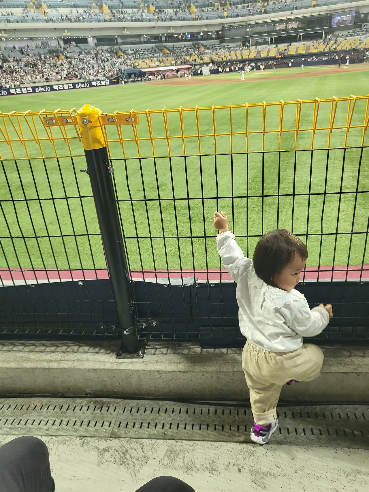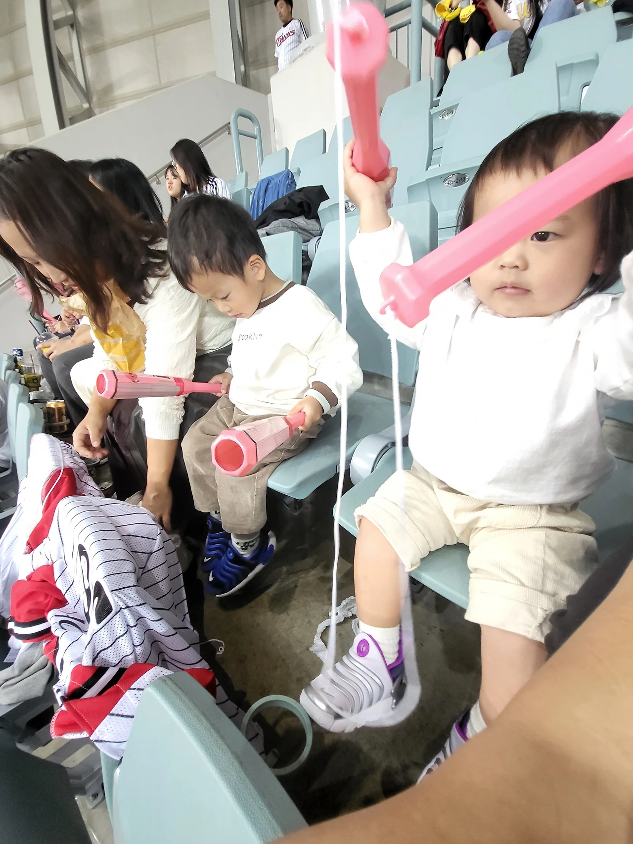 요 며칠새 쌀쌀했던 탓에 아이들도 단단히 무장을 하고 외출했는데 오늘 날씨는 제법 포근했다. 게다가 실내 구장인 고척 돔에 들어오자 반팔을 입어도 될 정도로 더웠다. 사람들이 주는 열기 때문인지 모르겠지만 걱정한 것에 비해 관람 환경이 상당히 훌륭했다. 그렇게 생애 두 번째 야구장 직관은 순조롭게 진행되었고 아가들은 가져온 응원봉을 들고 눈치껏 각자의 스타일로 응원하기 시작했다.