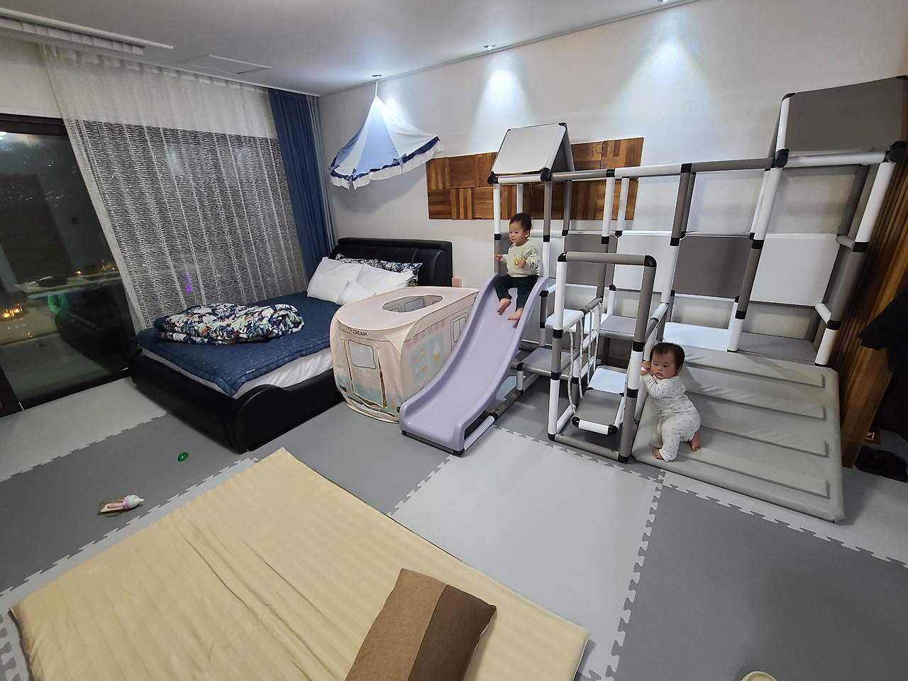 12월 크리스마스를 기념해서 아가들에게 즐거운 경험을 선물해 주고 싶어 근교의 풀빌라를 방문했다. 여름 내내 성수기라 비싸서 엄두도 못 냈지만 겨울에는 찾는 이가 많이 없어 가격이 저렴했던 것도 한몫했다. 하지만 제일 중요한 것은 우리 아가님들이 머무르는 데 불편한 점이 1도 없어야 할 것. 다행히 첫째와 둘째 모두 난생처음 방문한 키즈 풀빌라에 반색을 표하며 좋아했다. 집 안에 설치되어 있는 간이 놀이터와 집안 여러 곳에 존재하는 장난감들을 가지고 놀며 즐거운 시간을 보냈다. 그런데 어느 순간부터 혼잣말로 무언가를 연신 내뱉는 첫째의 모습이 수상했다. 뭐라고 중얼거리는지 옆에서 가만히 들어보니 아뿔싸...