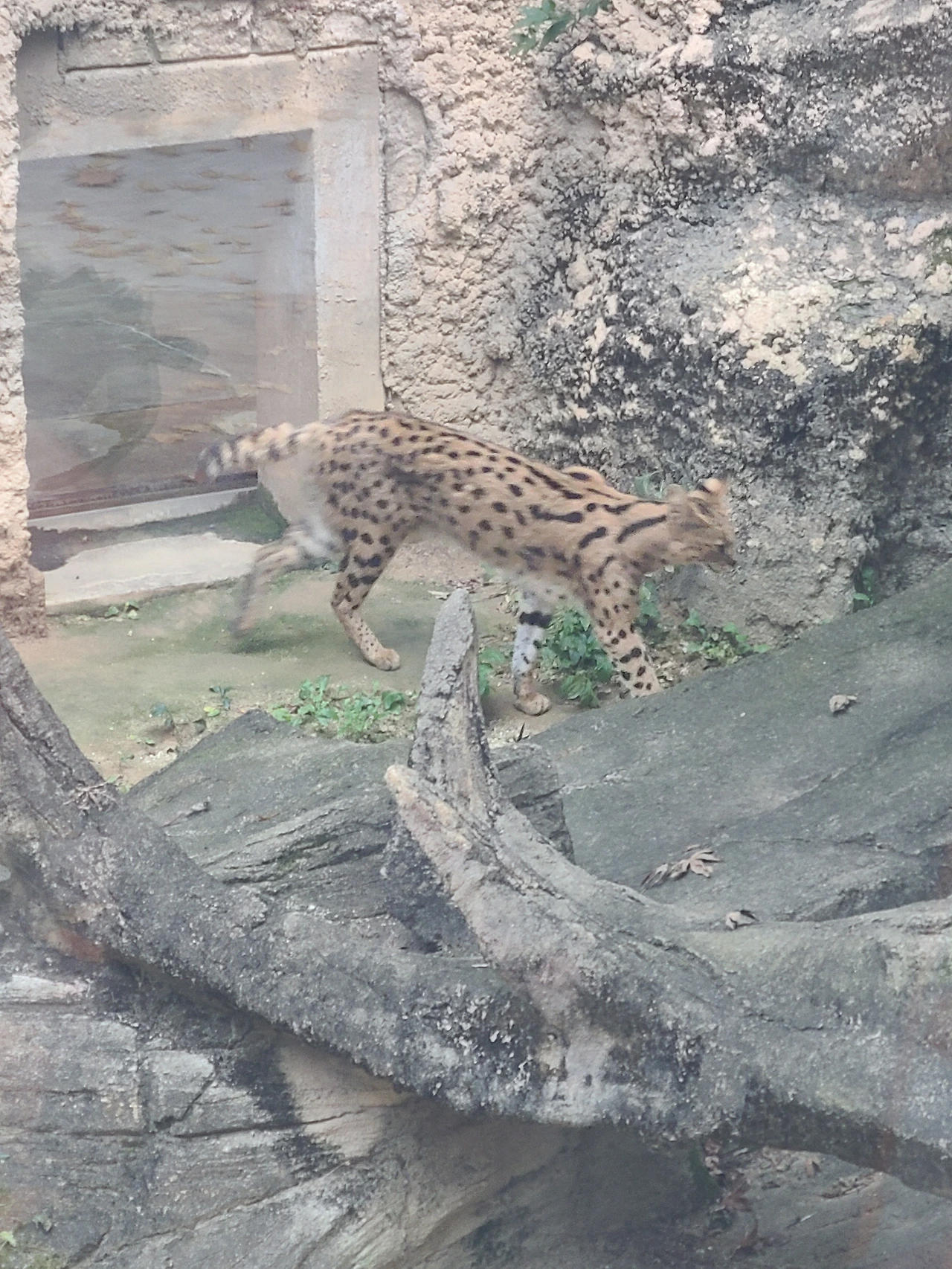 첫째는 요새 호랑이나 사자 같은 동물 그리고 티라노사우르스 등의 육식 공룡 등에 많은 관심을 갖기 시작했다. 그리하여 맹수 마당이라는 곳에 가서 세계 여러 나라에서 서식하는 대표적인 맹수들의 모습을 보기로 했다. 운이 좋아야 동물들이 활동하는 모습을 볼 수 있는데 때마침 호랑이와 하이에나 등이 어슬렁거리며 관람객들의 니즈를 충족시켜 주었다. 그중에서 첫째와 둘째뿐만 아니라 우리 가족에게 호기심을 자아내는 동물이 있었으니 그 이름은 바로 '서발'이다. 서발은 표범과 재규어처럼 점박이 무늬가 몸에 있는 육식 동물이었는데 다른 맹수들에 비해 상당히 슬림하고 날렵한 몸매를 가진 것이 특징이었다. 서발은 사바나에 주로 서식하는 고양잇과의 포유류로 정식 명칭은 Serval(서발 또는 서벌)이었다. 다른 맹수들도 많이 있었지만 두 아이 모두 서발의 날렵하고 호리호리한 모습이 인상적이었는지 한참을 눈을 떼지 않고 관람했다.