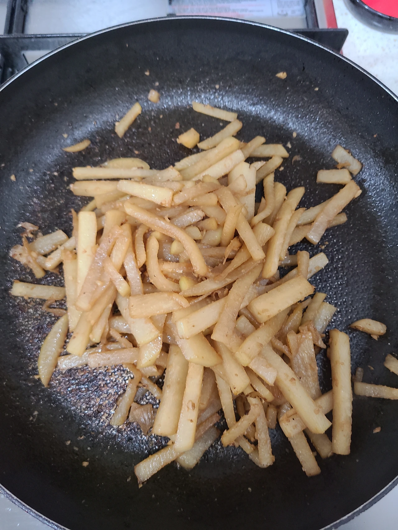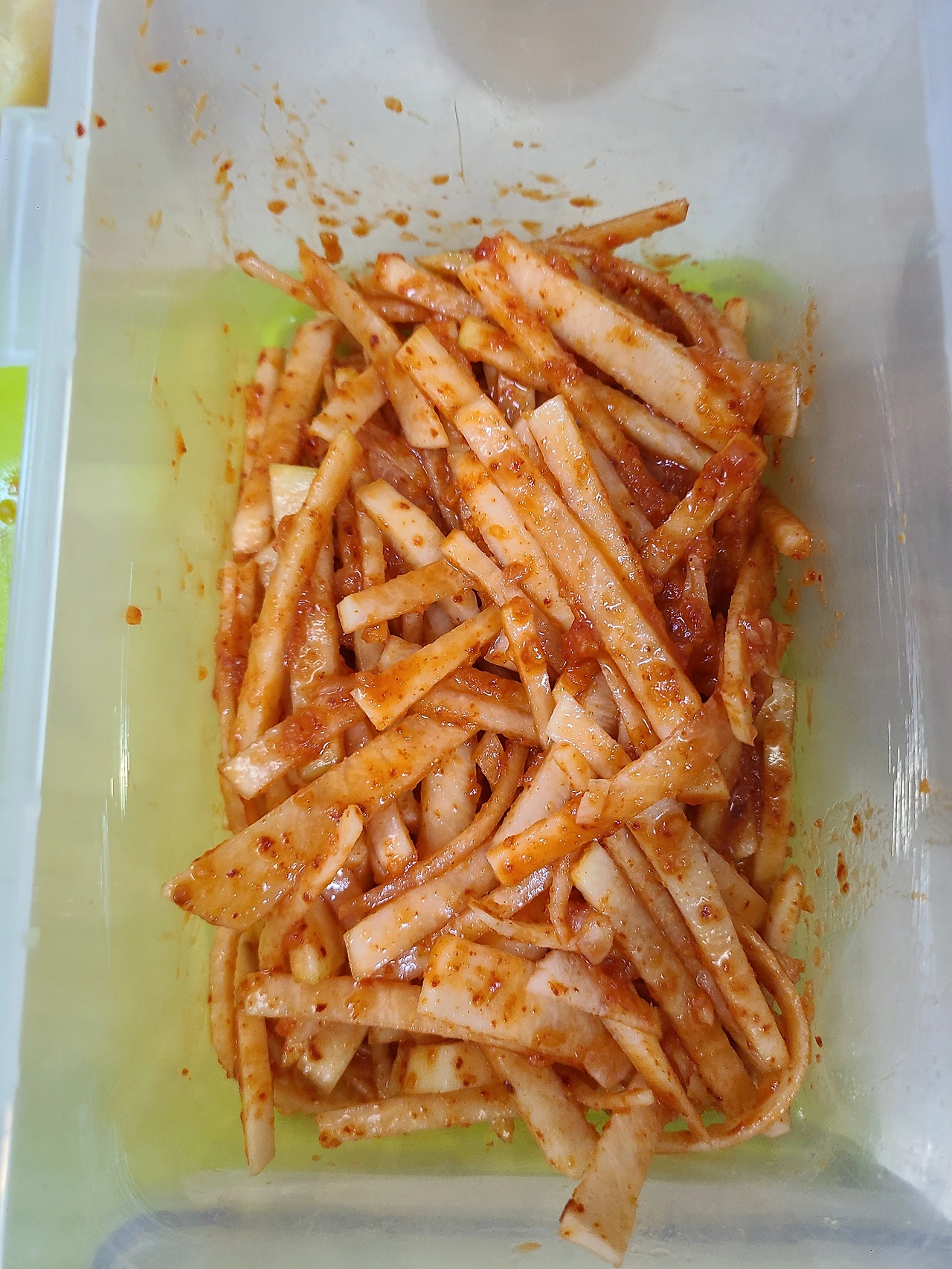 아이들 음식 위주로 만들다 모처럼만에 무생채를 만들려니 냉장고 속에서 숨죽이고 지내던 고춧가루와 다진 마늘의 환호성이 들리는 것 같다. 마치 토이스토리 만화영화에서 주인님의 놀잇감이 되지 못하다 느닷없이 선택당한 조연 장난감들 같다고나 할까. 이를테면 포테이토 아저씨나 렉스 정도? 그렇게 갖은양념과 설탕, 식초 등으로 얼렁뚱땅 10분 만에 무생채를 만들고 남은 무는 간장베이스의 무나물을 만들었다.