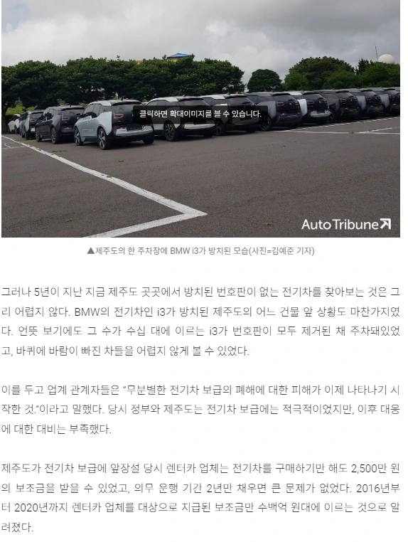 그러나 제주도의 렌터카 시장은 내가 보고 느낀 것과는 상당히 다른 모양새인 듯하다. 이번 여행을 통해 제주도 전기차 정책과 뉴스를 살펴보니 활성화된 전기차 시장과 인프라에 비해 중장기적인 발전에 대한 논의가 많이 미흡한 상황인 것으로 보인다. 단발적인 보조금 지급 및 세제 특혜로 제주도 내에 전기차 렌트가 불티나듯 활성화되었으나 지금은 오히려 골칫덩이가 돼버린 전기차들이 여기저기 산재해 있다는 것이다. 친환경 보호를 위한 전기차가 주변 경관이나 미관을 해치는 주범이 돼버린 것이다. 앞으로 제주도 여행을 다니면서 지속적으로 전기차를 렌트해서 다닐 생각인 만큼 향후 제주도 전기차 시장 흐름에 대해 지속적인 관심을 갖고 지켜봐야겠다는 생각을 했다. 왜냐하면 난 제주도 전기차 렌트가 상당히 마음에 들었고 꾸준히 활용하고 싶기 때문이다.