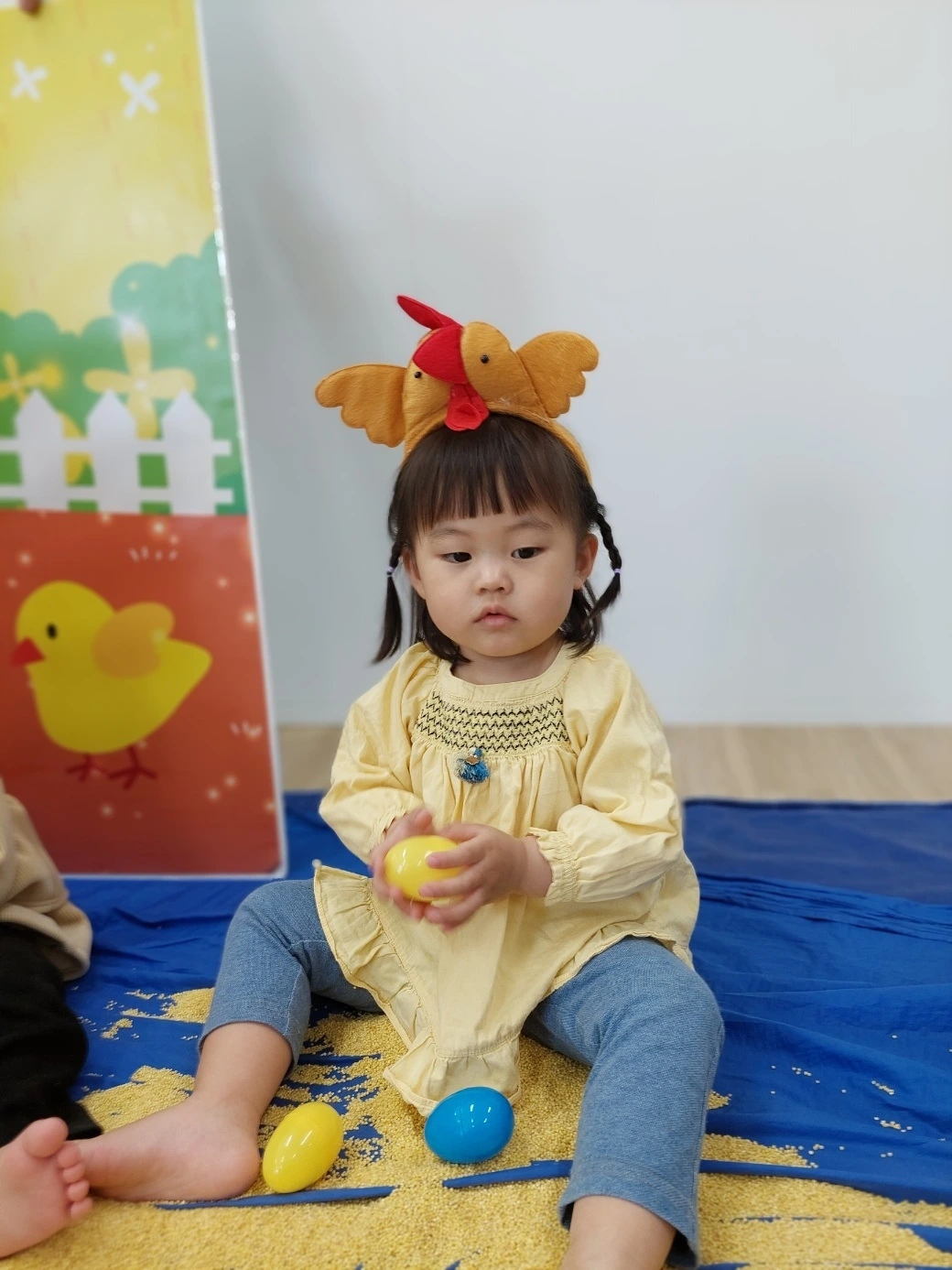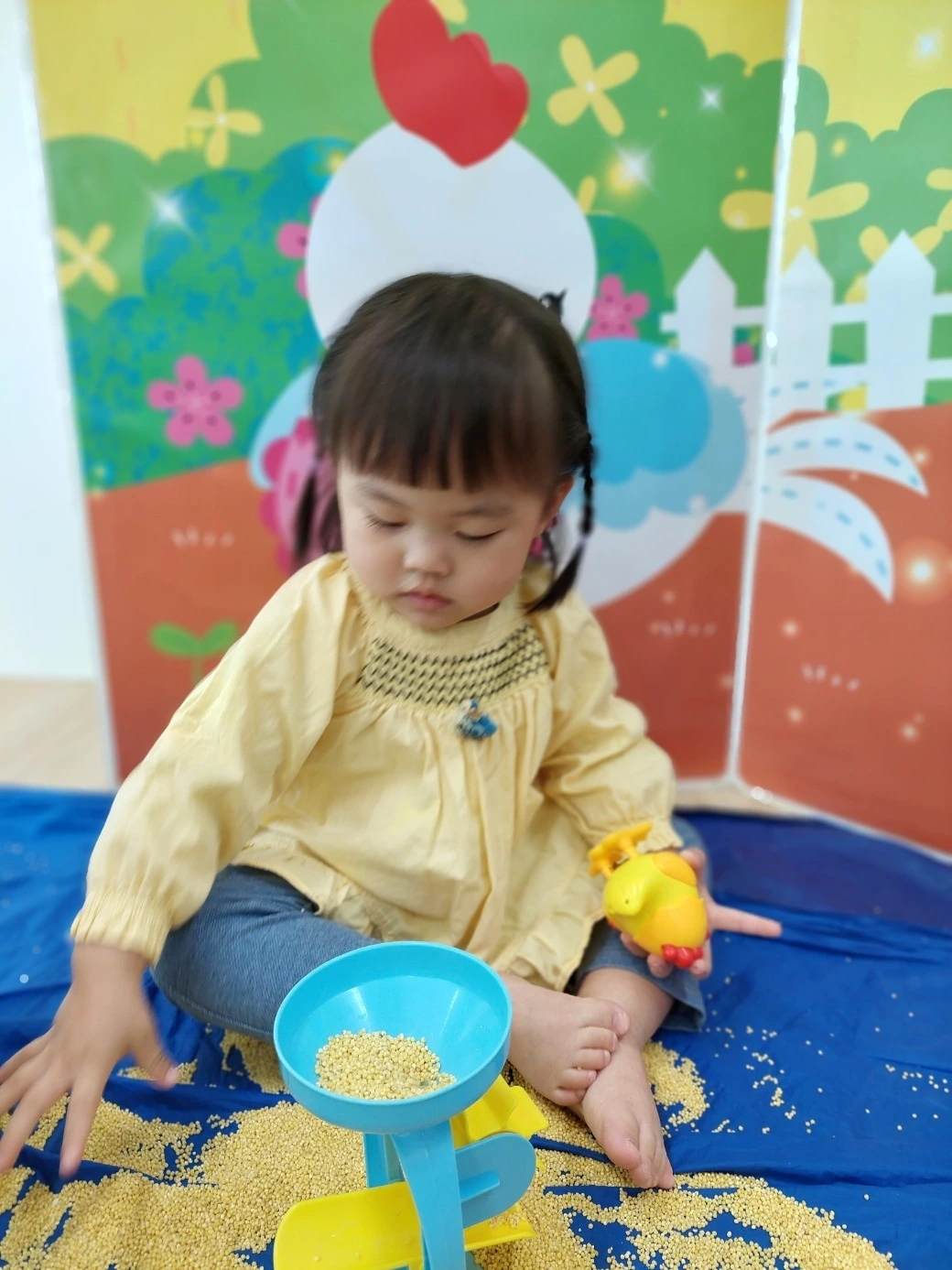만 1세 반 달콤이는 매주 화요일마다 '스토리오감' 프로그램을 듣습니다. 어린이집의 특성화 프로그램 중 하나로 각 주차마다 다양하게 설정된 주제를 바탕으로 오감을 발달시킬 수 있는 활동을 전개합니다. 그 일환으로 이번주는 식목일을 맞아 작은 콩나물 모종 만들기와 꼬꼬닭 먹이인 '조'를 활용한 수업을 진행했네요. 엄마 꼬꼬닭이 되어 아기 닭에게 조를 먹이로 주는 활동을 하면서 일상생활에서 경험하기 어려운 곡식 체험을 할 수 있었던 것이 인상적입니다. 콩나물 모종은 아빠인 제가 그날 출근하기 전에 동쪽 창문 쪽에 놓고 물도 갈아주면서 관리하고 있는데요. 이번주는 오전에 흐린 날이 많아서 그런지 콩나물이 쭉쭉 뻗지 못했습니다.