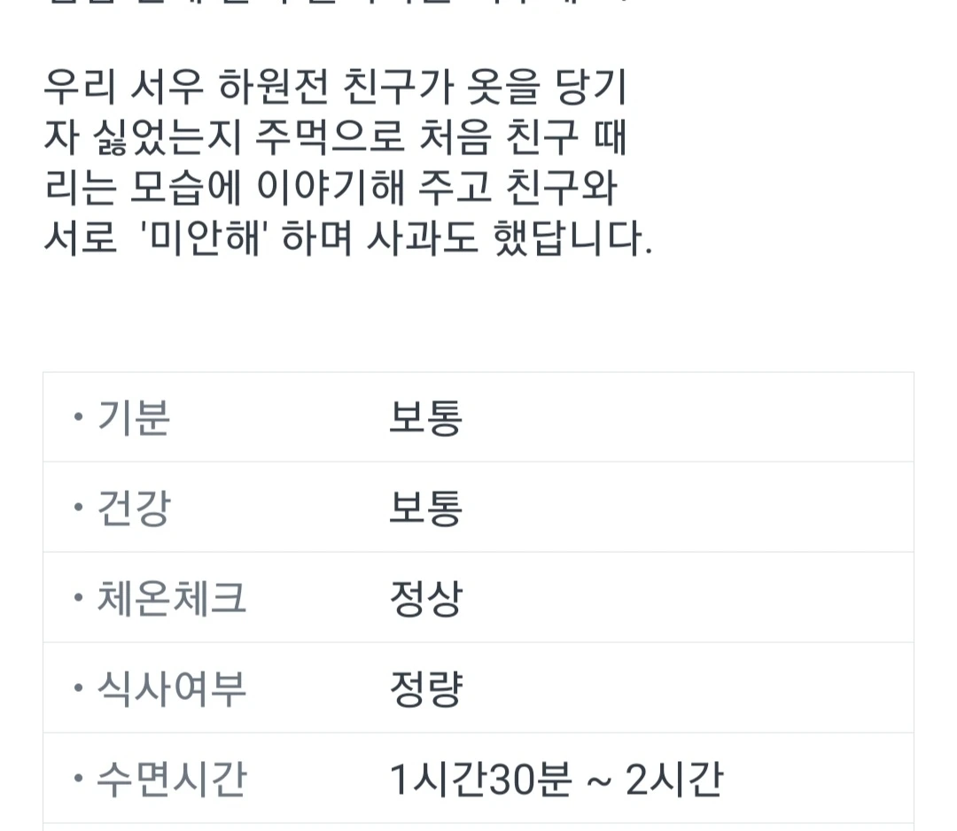 그래도 달콤이의 무엇보다 큰 장점은 뒤끝이 없다는 것이라고 하네요. 정확하게 캐치하신 담임선생님의 통찰력에 무릎을 탁 치는 순간이었습니다. 실수를 하더라도 잘못에 대한 인정이 빠르고 짜증이나 떼를 쓰는 일도 잠깐일 경우가 많습니다. 이미 벌어진 일에 대해서 A부터 Z까지 복기하는 허니와는 완전 반대 성향이라고 할 수 있죠. 이 또한 성장하는 단계이니 너무 괘념치 마시고 어린이집에서 누구보다 즐겁게 생활하고 있으니 가정에서도 언제든 필요하거나 논의할 것이 있으면 연락 주시라는 선생님의 말씀을 끝으로 상담주간은 마무리가 되었습니다. 결론은 잘 지내고 있으니 가정에서도 아가들과 즐거운 시간을 보낼 수 있도록 협조해 달라는 이야기였습니다.