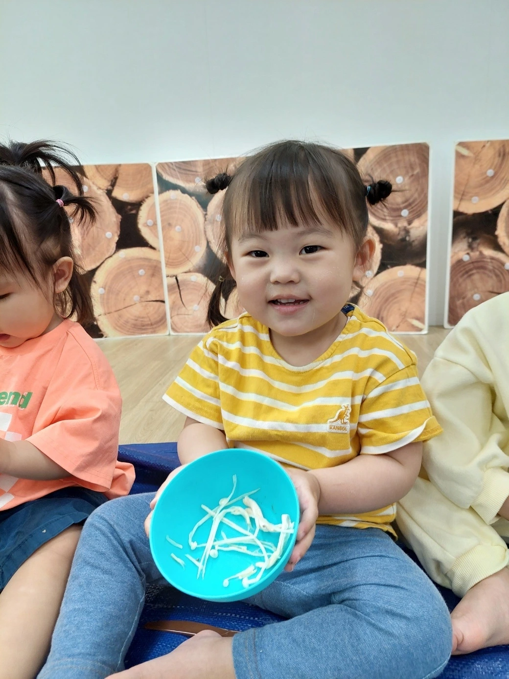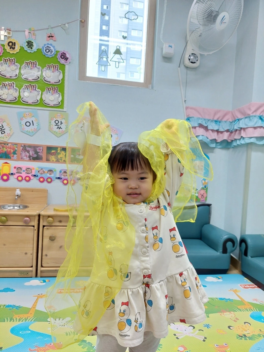 허니가 이렇게 어린이집에서 시간을 보내는 동안 달콤이는 월요병을 극복하기 위해 어린이집에서 누구보다 열심히 활동에 참여했습니다. 아침 체조 시간에 자기가 나오는 음악이 나오면 두 발을 쿵쿵 밟으며 즐겁게 춤을 추고, 자기가 좋아하는 그림책을 가져다 선생님께 적극적으로 읽어달라고 하는 모습이 인상적입니다. 달콤이는 요즘 부쩍 표현 활동에 관심이 많아지면서 리본 춤 추기, 신체 표현 활동하기 등에 열정적으로 참여하는 모습을 보인답니다. 그도 그럴 것이 요즘 소파에서 점프하기, 그네 서서 타기, 킥보드 한 발 들고 타기 등 위험하고 스릴 있는 활동을 자주 선보이고 있으니 충분히 이해가 가는 부분입니다.