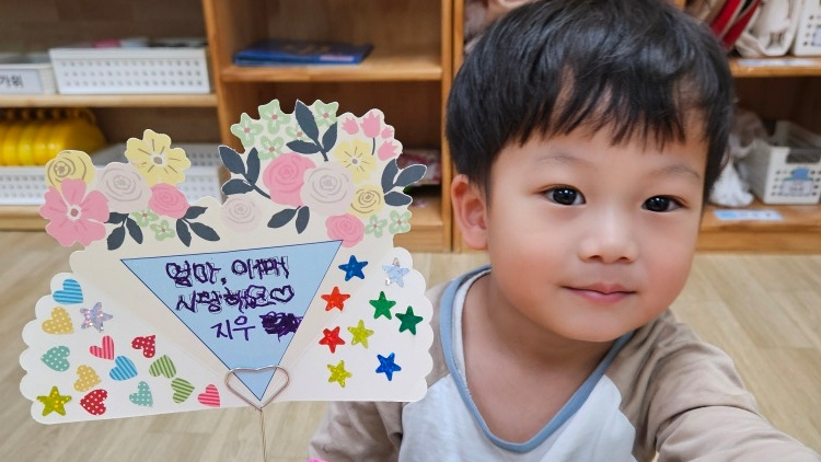 가는 정이 있으면 오는 정이 있는 한 주입니다. 어린이날 연휴가 끝나고 며칠이 지나자 곧바로 어버이날이 왔으니 말입니다. 허니와 달콤이 모두 어린이집 선생님과 함께 카드 만들기, 카네이션 만들기 등을 하면서 엄마 아빠에 대한 사랑을 표현해 주었습니다. 제법 글씨를 알아볼 수 있는 허니는 글자를 컬러링 하여 사랑의 편지를 만들어 주었고, 달콤이는 머리 장식과 예쁜 카네이션 포장을 주었는데 아가들의 작품 하나하나 정성이 묻어있는 것이 느껴져 마음이 따뜻해지는 순간이었습니다.