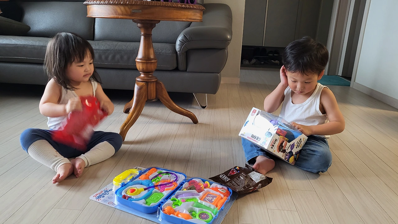 올해 어린이날과 대체 휴일은 모두 비로 시작해서 비로 끝났습니다. 아이들과 어쩔 수 없이 실내 놀이만으로 놀아줘야 했기에 많은 아이디어를 고안한 뒤 실행에 옮겼습니다. 막상 잘 놀고 나니 교사임을 숨길 수 없는 탓인지 차시별 활동을 만들기, 그리기, 신체 놀이, 역할 놀이 등으로 다양하게 구성하려 했던 노력이 엿보여 혼자 너털웃음을 지었네요. 허니와 달콤이 모두 김밥 만들기, 병원놀이를 열심히 하면서 실내에서도 의미 있는 시간을 보냈고요. 잠들기 직전까지도 클레이로 아이스크림 만들기, 점핑 파크에서 신체놀이하기 등을 하면서 그야말로 꽉 찬 어린이날 연휴를 보냈습니다.