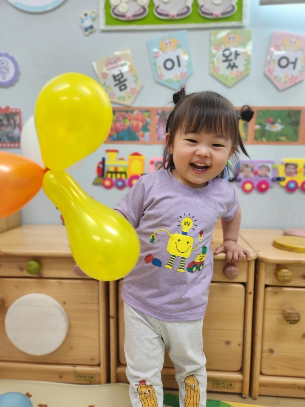 전날의 여운이 채 가시기도 전에 아가들은 화요일, 어린이집에서 미니 체육대회를 진행했습니다. 체육대회를 할 때마다 3살 때 짐볼이 너무 커 무서운 나머지 하루종일 엉엉 울었던 허니의 모습이 오버랩됩니다. 다소 황당한 이유로 울었던지라 본인은 힘들었겠으나 아빠 입장에선 사실 좀 웃기기도 하거든요. 5살이 된 지금, 허니는 예전의 기억은 안중에도 없는지 신나고 재미있게 짐볼을 가지고 놉니다. 시간이 약이라는 말은 이럴 때 쓰는 모양입니다. 그리고 달콤이는 늘 그렇듯 어린이집에서 하는 행사는 함박웃음을 띠며 좋아합니다. 연신 얼굴에서 미소가 가실일이 없는 달콤이의 모습은 사랑스럽기 그지없지요.