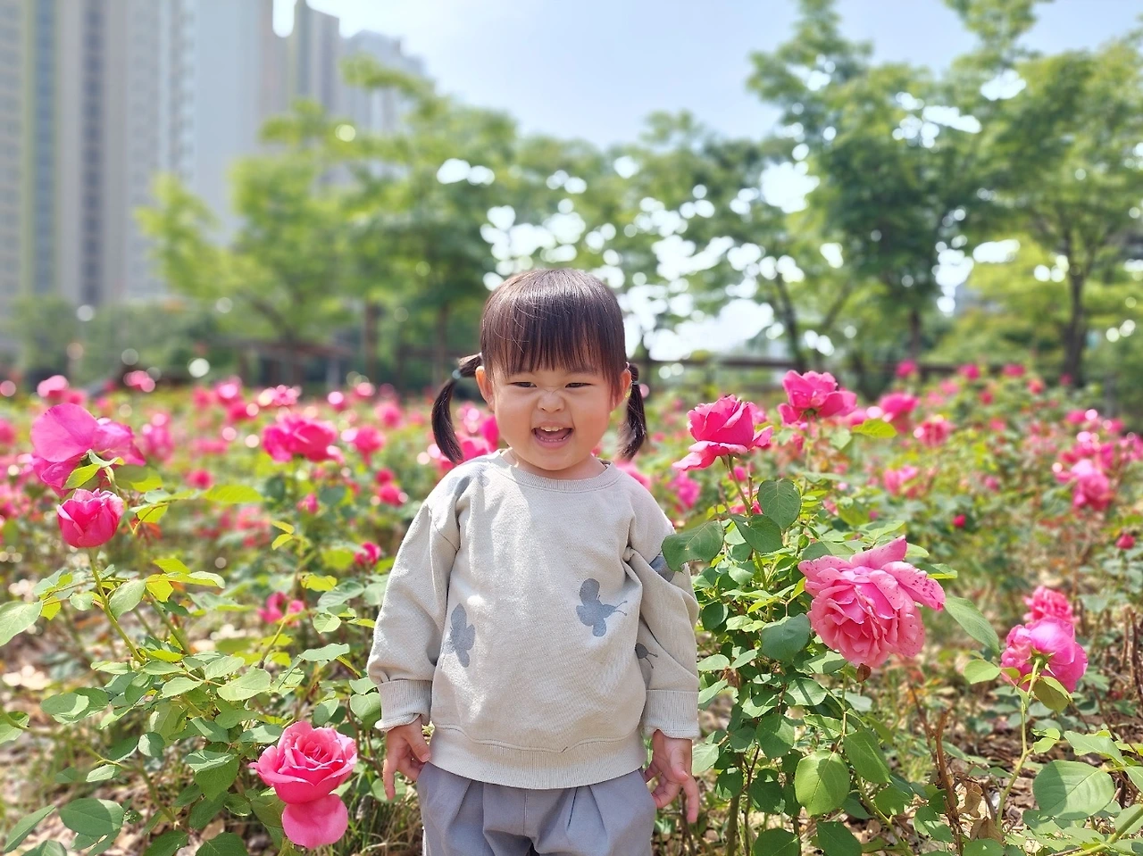 그렇게 마주하게 된 금요일, 아가들은 맑은 초여름 날씨를 만끽하러 야외로 또 나왔답니다. 때마침 예쁘게 핀 장미를 배경으로 사진도 찍고, 공원 근처 놀이터에서 놀이기구를 타며 굉장히 즐거워합니다. 저렇게 어린이집에서 놀이터에 다녀왔는데도 하원 이후네도 또 놀이터를 찾는 아가들입니다. 8시가 다 되어서야 어두워지는 요즈음인 만큼 아가들이 바깥 활동을 원만하게 할 수 있도록 부지런히 체력 관리를 잘해야겠습니다.
