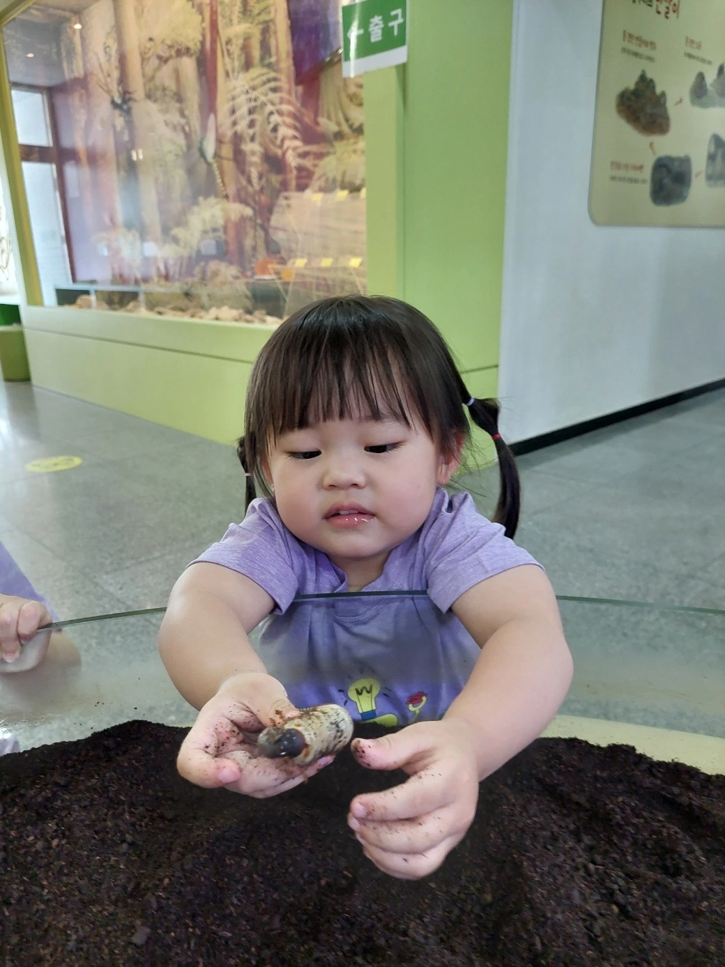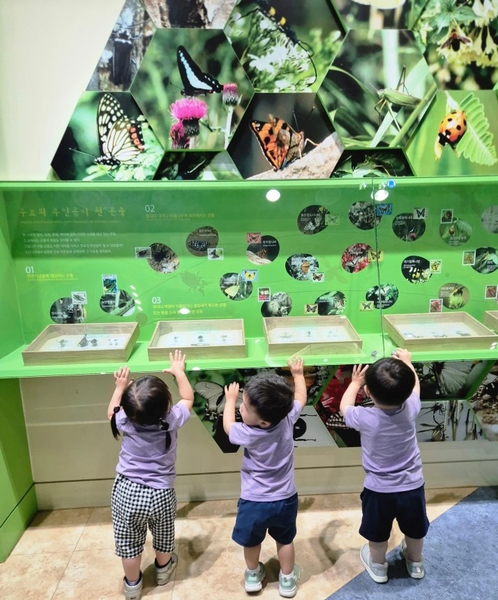 그리고 목요일 오후에 달콤이는 친구들과 함께 근교에 있는 곤충박물관을 다녀왔습니다. 달콤이는 평소에 곤충에 그다지 큰 관심을 갖지 않지만 오빠가 곤충을 좋아하는 탓에 몇 번 곤충박물관을 선행학습(?)으로 방문한 적이 있습니다. 그 때문인지 다른 친구들은 곤충을 보고 소스라치게 놀라며 무서워할 때 당당하게 애벌레를 손으로 만지며 곤충에 대한 거부감을 전혀 보이지 않아 선생님들이 많이 놀라셨다는 이야기를 해주셨네요.