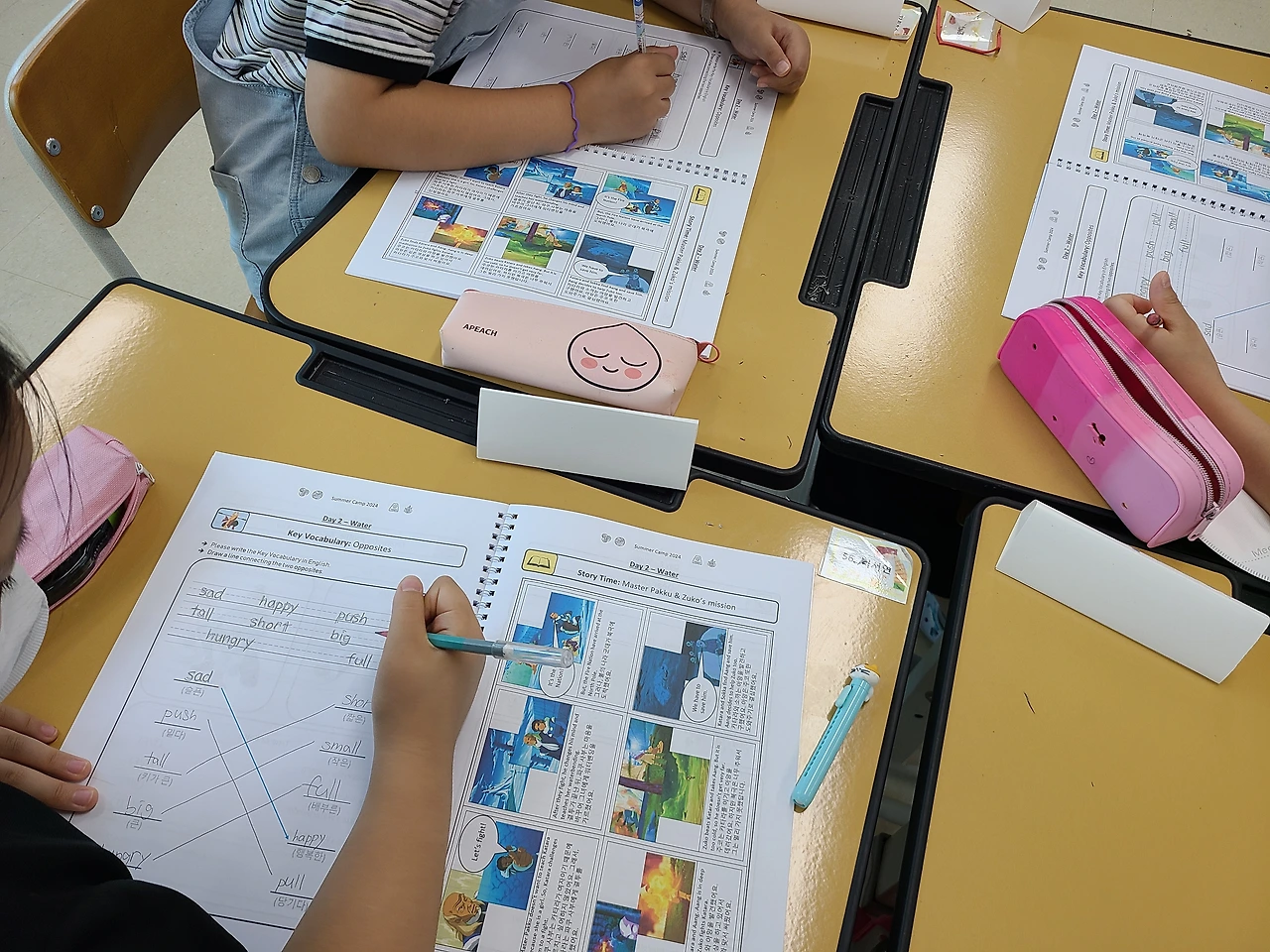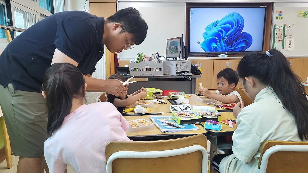 1주일간 원어민과 코티칭(co-teaching) 수업을 바탕으로 3, 4학년 영어캠프를 진행했습니다. 매일 9시부터 12시까지 총 5회의 수업을 진행했고 교재부터 교구 구매, 간식 세팅까지 빠짐없이 체크해서 수업에 적용시켰습니다. 영어 캠프의 묘미는 정규 교육과정에 국한되지 않은 탄력적 테마형 수업이 가능하다는 것입니다. 색깔, 숫자부터 시작해서 환경, 탐정놀이, 스포츠까지 학생들이 좋아할 만한 테마로 구성했고 되도록이면 학생들이 원어민과 가능한 한 많이 영어로 대화할 수 있는 기회를 주는 것에 주안점을 두었죠.