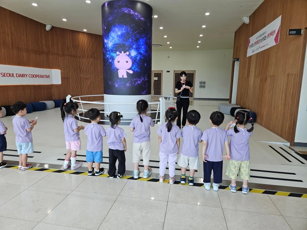 그리고 다음날, 이른 아침부터 허니와 친구들은 스쿨버스에 몸을 싣고 견학을 다녀왔습니다. 장소는 바로 양주에 위치한 '서울우유 박물관'인데요. 우리가 매일 마시는 우유가 어떤 과정을 통해 생산, 유통, 소비가 되는지에 대해서 배우는 시간이었습니다. 우유뿐만 아니라 시중에서 인기리에 판매되는 요구르트와 요거트 관련 상품들도 알아볼 수 있었고요. 아이들은 저마다 자신의 이름이 새겨진 출입증을 받아 가상으로 공장 직원이 되어 멸균 등의 우유 공정에 참여하는 등 생각보다 자세하게 우유에 대해 배울 수 있어 유익한 시간이었던 것 같습니다. 견학 라인마다 간단한 체험 부스와 게임 공간이 있어 아이들이 재미있게 참여할 수 있었던 점도 좋았고 무엇보다 양손 가득 유제품을 갖고 집에 돌아올 수 있어 그것 또한 좋았습니다.
