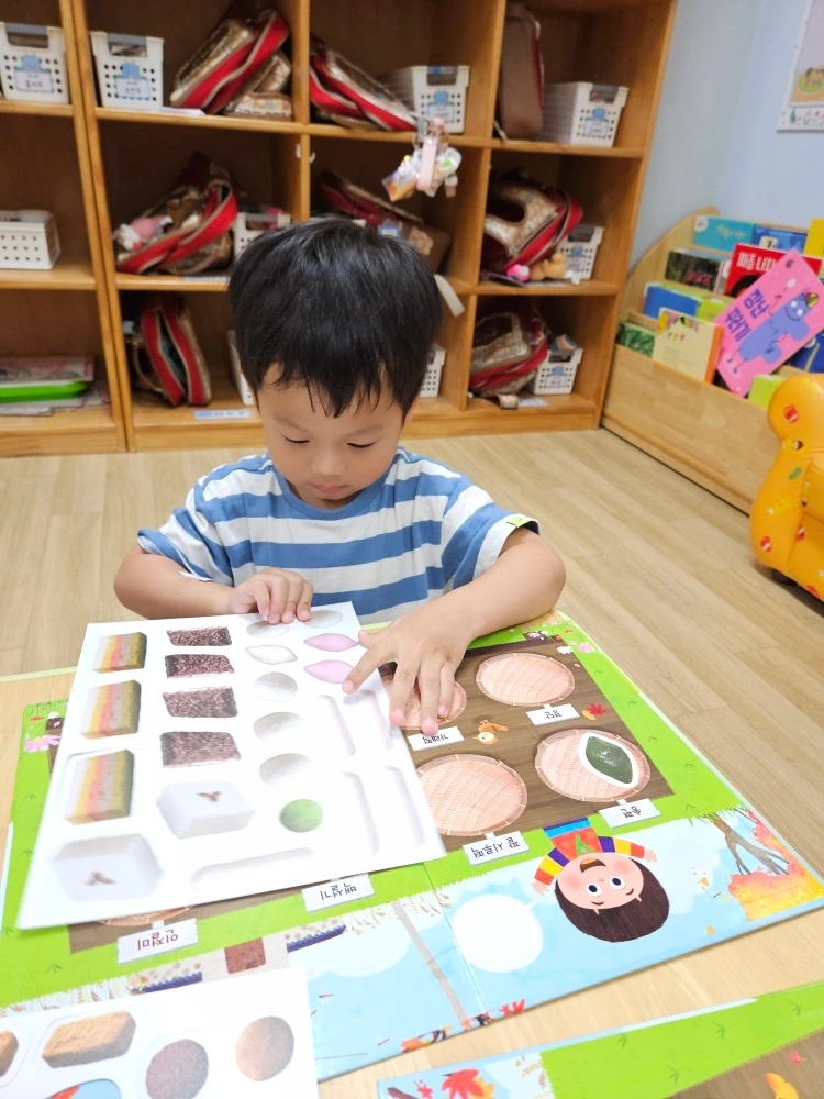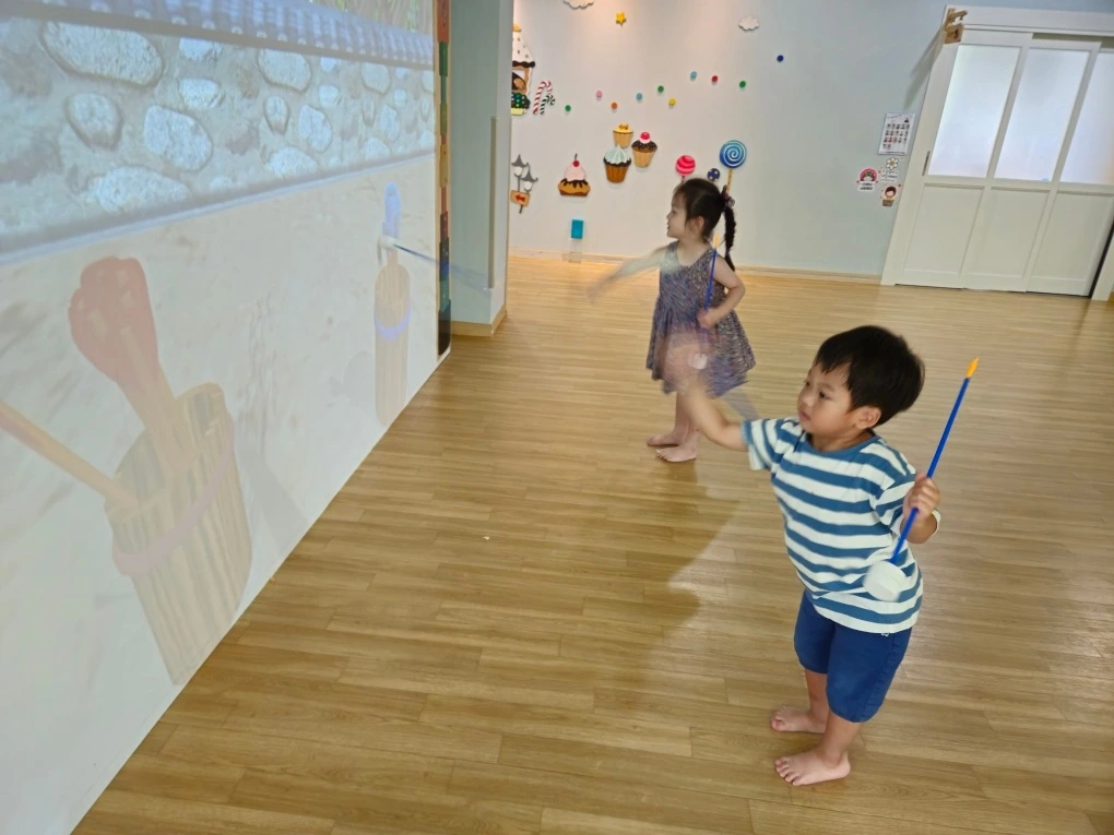 화요일 VR 액션큐 시간에는 우리나라 고유의 전통놀이 중 하나인 '투호놀이'를 체험했습니다. 이미 '용인 어린이 상상의 숲'에서 아빠와 투호 놀이를 예습했던 허니이기에 게임 룰을 이해하는 데에는 어려움이 없었을 것으로 생각합니다. 다만 VR이다 보니 아이들의 수준에 맞게 득점하는 모습을 많이 구현해주지 않았을까라는 내심 기대를 해봅니다. 누리나래 교과서 익히기 시간에는 떡의 이름과 종류를 알아보고 떡 모양 교구를 활용하여 종류별로 떡을 무리 짓는 활동을 하였습니다. 요즘은 빵이 주식과 간식을 대표하기에 아이들이 떡에 대해 관심을 갖기 쉽지 않기에 여러 가지 떡을 공부해 두는 것은 여러모로 필요한 것 같습니다.