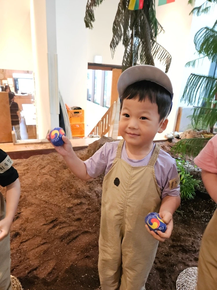 만 3세 허니는 '고마워 토토'라는 곳을 방문하여 모처럼만에 흙과 하루종일 함께 하는 시간을 보냈습니다. 엄마아빠가 어렸을 때는 운동장, 놀이터, 공터 등이 전부 흙바닥이었기 때문에 흙과 함께한 추억이 많습니다. 흙과 친해지다 못해 옷, 신발, 가방 등에 흙먼지를 가득 머금고 뛰놀았기에 집으로 돌아가서 옷을 벗으면 흙먼지가 바닥에 우수수 떨어지는 일이 다반사였지요. 세월이 많이 흘러 아스팔트, 우레탄 바닥이 아이들의 놀이 공간을 대신하다 보니 상대적으로 요즘 아이들은 흙을 자연스럽게 경험하는 경우가 확실히 줄어들었습니다. 그래서 그런지 흙 체험 시설에서 허니의 모습은 한층 호기심 어린 태도로 가득한 게 느껴집니다. 흙놀이터에서 맨발로 콩주머니 던지기, 줄다리기 등의 청백전도 하고 꼬마 김밥도 직접 만들어 먹으면서 유익한 시간을 보냈네요.