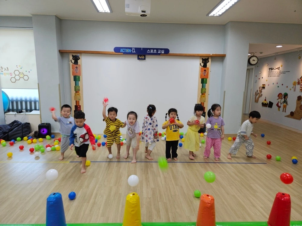 특성화 프로그램인 '누리나래' 시간에는 숫자와 한글을 집중적으로 배우는 시간을 가졌습니다. 0~9까지의 수 이후 두 자릿수의 숫자까지 차근차근 읽고 쓰는 활동을 배우고 더 나아가 숫자의 크기를 비교해 보고 물건에 빗대어 보는 활동을 해보았네요. 한글 관련 유튜브로 집에 와서 스스로 복습하는 시간을 좋아하는 허니이다 보니 최근에는 짧은 동화는 엄마아빠의 도움이 없이도 읽어내는 모습을 보입니다. 올해가 지나면 숫자와 한글에 대한 이해도가 좀 더 두드러질 것으로 보이기에 관련 서적을 몇 권 더 사서 함께 숫자, 한글 공부하는 시간을 보내면 좋겠다는 생각을 했습니다. 체육 시간에는 표적마다 색깔을 정해놓고 손으로 굴리거나 던져서 맞추는 활동을 했습니다. 아가들에게 가장 거부감이 없는 것이 바로 '둥근 공'이기에 공과 함께 친해지는 시간은 손과 눈의 협응력을 신장시킬 뿐 아니라 집중력 향상에도 도움이 되기에 유익하다고 생각합니다.