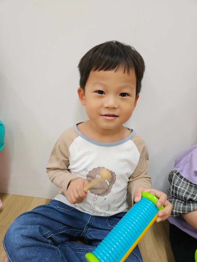 만 3세 반 허니는 월요일에 누리나래와 위드팡팡 수업을 들었습니다. 누리나래 시간에는 윈드브레이커를 입고 바람의 움직임을 온몸으로 느껴보는 활동을 했습니다. 눈에 직접 보이지는 않지만 윈드브레이커라는 매개체를 이용하니 바람의 움직임을 간접적으로나마 느낄 수 있어 유익했던 시간으로 보입니다. 위드팡팡 시간의 주제는 '귀뚜라미 표현하기'였습니다. 악기는 귀로 메이커를 활용했고요. 긁어서 소리를 내며 귀뚜라미의 습성을 온몸으로 표현한 점이 인상적입니다.