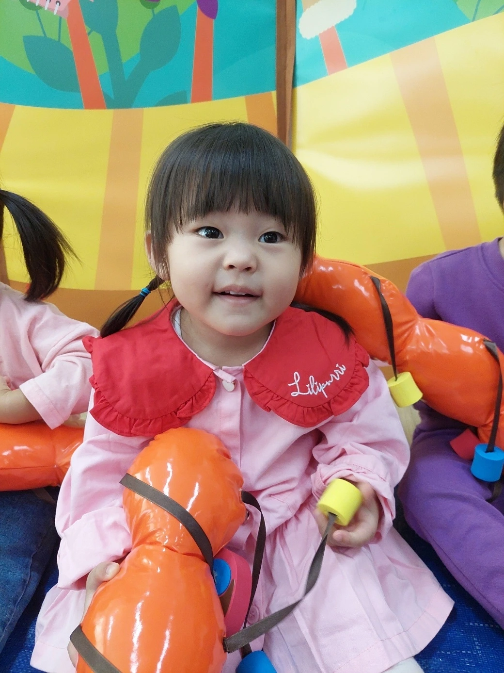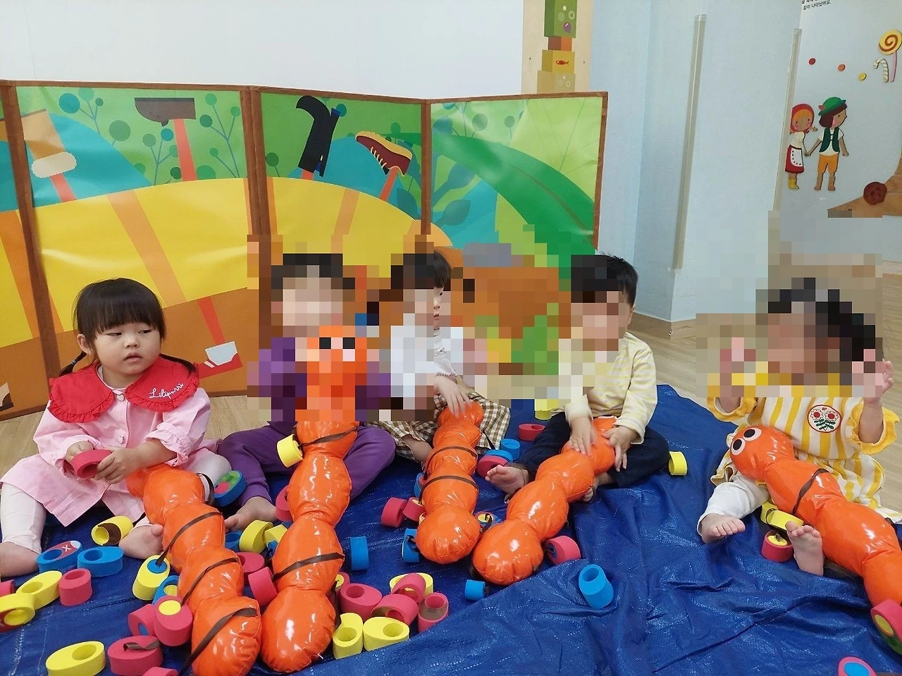 그리고 화요일 오후, 스토리오감 시간에는 지네 만들기를 하였습니다. 오밀조밀한 지네의 다리에 어울리는 신발을 알맞게 끼우면서 지네의 생김새와 습성에 대한 교육을 간단하게 받았습니다. 평소 곤충을 크게 두려워하지 않는 달콤이라 그런지 큰 거부감 없이 재미있게 수업에 참여한 점이 대견하고 사랑스럽네요.