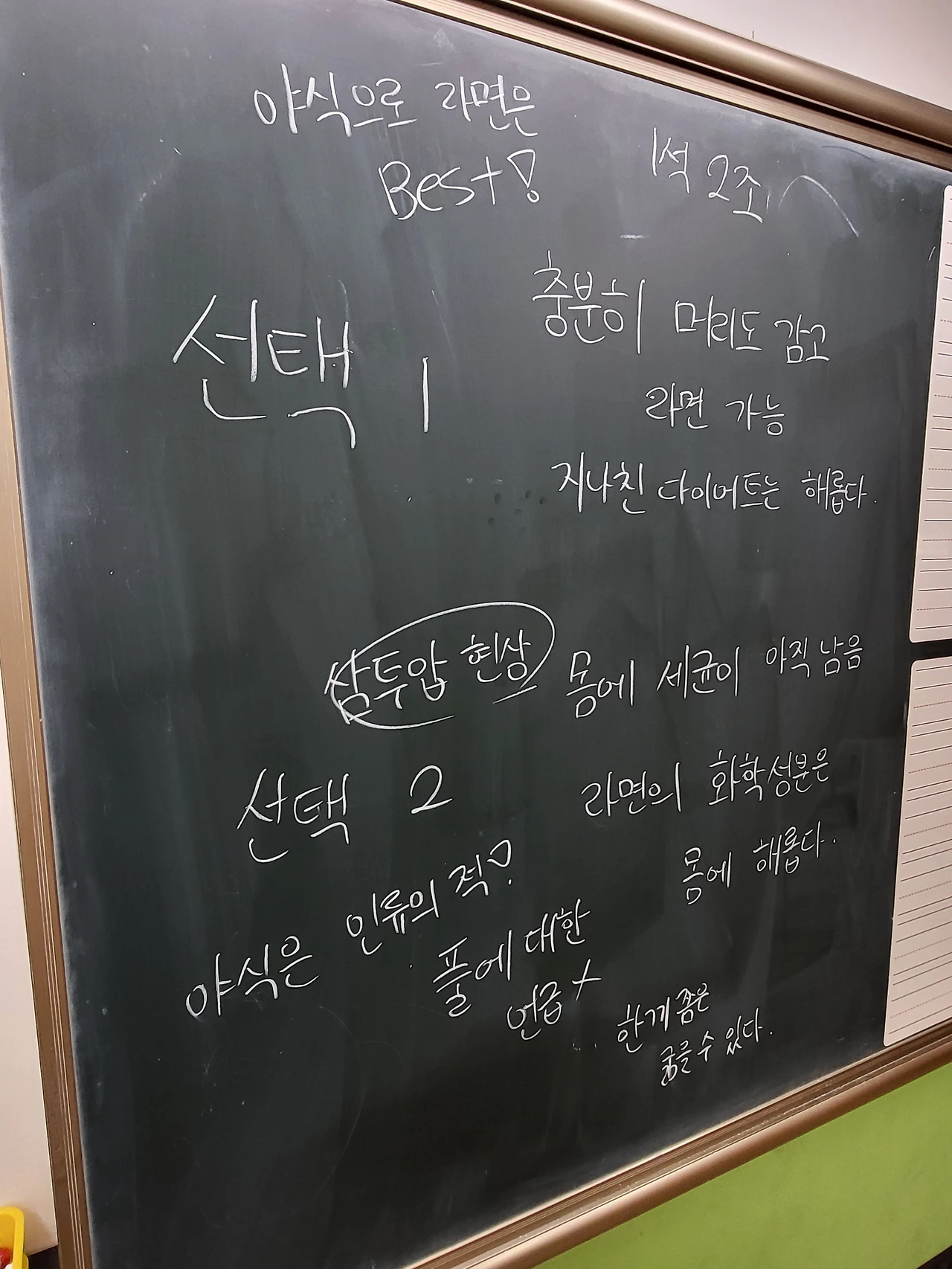 주제가 재미있는지 교실 바닥이 아수라장이 된다. 그 와중에서도 학생들의 눈은 생기가 돌고 무언가 더 하나라도 얘기해서 나의 의견을 관철시키고자 하는 의지가 엿보인다. 선생님은 개입하지 않고 그저 관찰한다. 그리고 질문할 것이 있는지 살펴보고 의견을 모으기 위한 준비과정을 거친다. 눈 깜짝할 새 10분간의 1대 1 토론이 끝난다. 그리고 학생들의 의견을 하나하나 들어보며 칠판에 적고 생각을 모은다. 때때로 웃음이 오가고 탄성이 섞인다. 글씨는 엉망이고 방식은 다소 엉성할지라도 적어도 선생님과 학생이 집중한다. 이게 제일 중요한 포인트다. 나도 재미있고 학생들도 재미있어한다는 것.