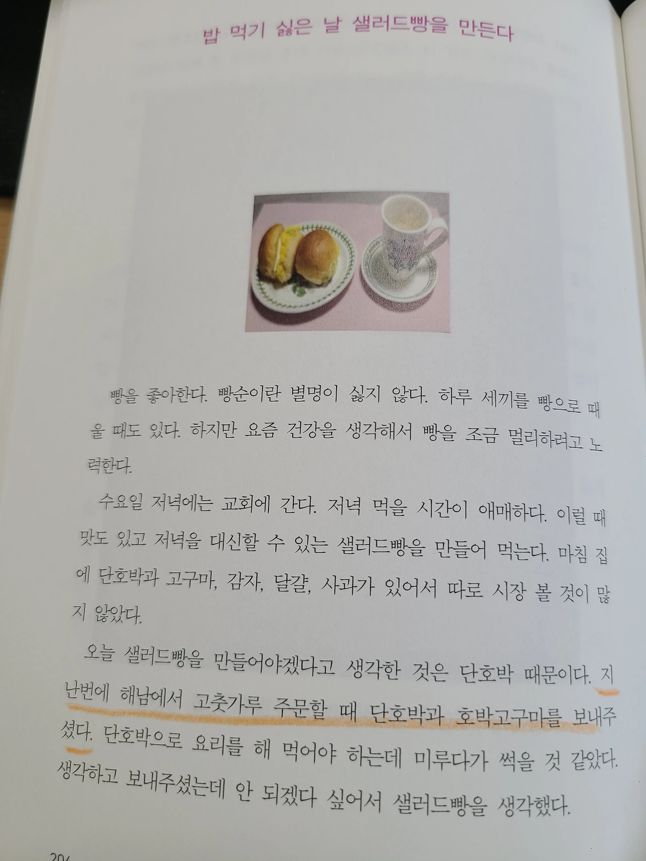 읽다 보니 종종 브런치에서 작가님께서 게재해 주신 글들을 만날 수 있어 반가웠다. 그중에는 10만 뷰를 달성한 에피소드도 있었고 작가님의 요리 노하우가 물씬 배어있는 레시피도 있었다. 집에서 부엌일을 와이프보다 더 많이 하고 있고 5살, 3살 아이들이 제법 먹성이 높아지는 시기라서 작가님의 레시피를 배워보고 싶다는 생각이 들었다. 군대에서 취사병을 하며 새벽마다 그렇게 볼멘소리를 하며 만들었던 샐러드도 (일명 '군대리아'라고 불리는 특식에 빠지지 않는 반찬 중 하나), 만들 때마다 흰 밥을 2 공기씩 배불리 먹어야 직성이 풀리던 돼지고기 김치찜도 하나하나 작가의 노하우와 정성이 때 묻어 있어 좋았다. 대단하지 않지만 그 자체로 정성이 깃들고 맘 편하게 배불리 먹을 수 있는 엄마 밥상처럼 말이다. 묻지도 따지지도 그 어떤 대가 하나 바라지 않는.
