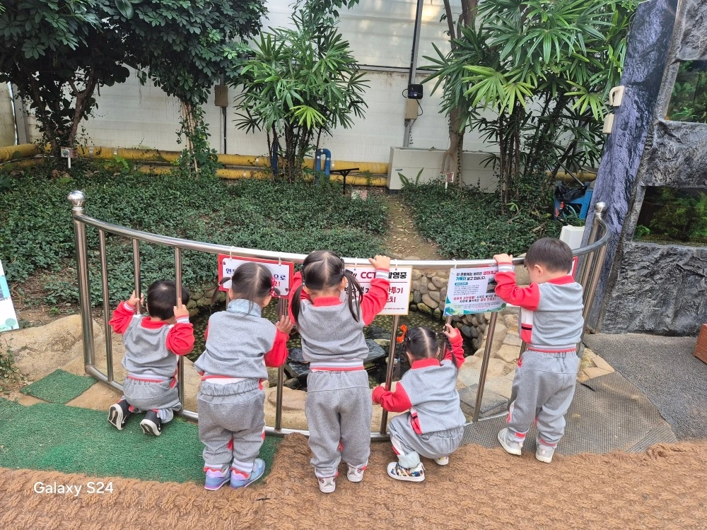 그리고 오빠와 마찬가지로 달콤이반 친구들도 곤충 생태관을 방문하여 곤충을 직접 만져보고 관찰하는 활동을 하였습니다. 오빠와는 달리 곤충에 전혀 거부감이 없는 달콤이는 다른 친구들을 대신해서 곤충을 이래저래 만져보며 의기양양했다는 후문입니다. 여느 곤충박물관과 달리 이곳에선 거북이와 물고기, 닭 등 여러 동물들의 모습도 함께 볼 수 있어 볼거리가 풍성했다고 하는데요. 닭장 앞에서 '꼬꼬댁' 소리를 내며 흉내도 내고, 생태관 앞 자그마한 놀이터에서 친구들과 신나게 놀면서 현장체험학습을 재미있게 보냈다고 하네요. 점심도 2그릇이나 먹고요.