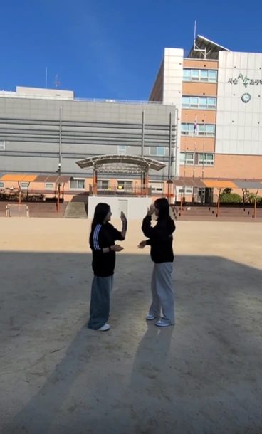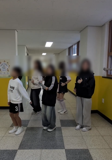 그렇게 진행된 촬영, 아이들의 얼굴에서는 웃음이 떠나갈 줄 몰랐습니다. 운동장에서도, 야외 놀이터에서도 촬영은 순조롭게 진행되었습니다. 키 차이가 많이 나면 무릎을 굽혀주고, 체격 차이가 많이 난다 싶으면 촬영 거리를 조정해 주는 등 배려하는 모습도 서슴지 않았죠. 30초 안에 가장 트렌디함을 반영할 수 있는 것이 무엇일까 고민하다가 많은 사람들이 알고 있는 '삐끼삐끼' 춤을 적용해 보는 건 어떨까 제안하였습니다. 보통 여학생들 같으면 손사래를 칠 제안이지만 아이들은 적극적으로 찬성해 주었습니다. 언제 서로 싸웠냐는 듯 안무에 대한 디테일함까지 서로 코치해 가며 촬영에 임한 아이들의 모습이 대단히 인상적이었습니다.