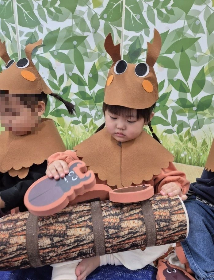 그리고 스토리오감 시간에 사슴벌레와 마주하는 시간을 가졌습니다. 사슴벌레 모형을 이리저리 움직이며 사슴벌레의 습성을 간접적으로 체험해 보았습니다. 그리고 실제로 사슴벌레와 인사하며 사슴벌레를 손으로 만져보기도 했는데요. 곤충을 전혀 두려워하지 않는 달콤이인지라 오늘도 친구들을 대신해서 사슴벌레를 만져보았다네요. 그런 달콤이의 모습을 친구들은 곁에서 신기하게 쳐다보았다고 합니다. 하긴 어린이집에서도 친구들 사이에서 유일하게 그네를 서서 타는 달콤이. 겁이 없는 것이 과연 장점일지 단점일지 알 수 없지만 오늘만큼은 큰 장점으로 거듭났습니다. 그리고 11월 생일을 맞이한 친구를 축하해 주며 12월로 차근차근 발돋움하는 순간을 맞이하였습니다. 늘 그랬던 것처럼 올 한 해도 그렇게 지나가려나 봅니다.