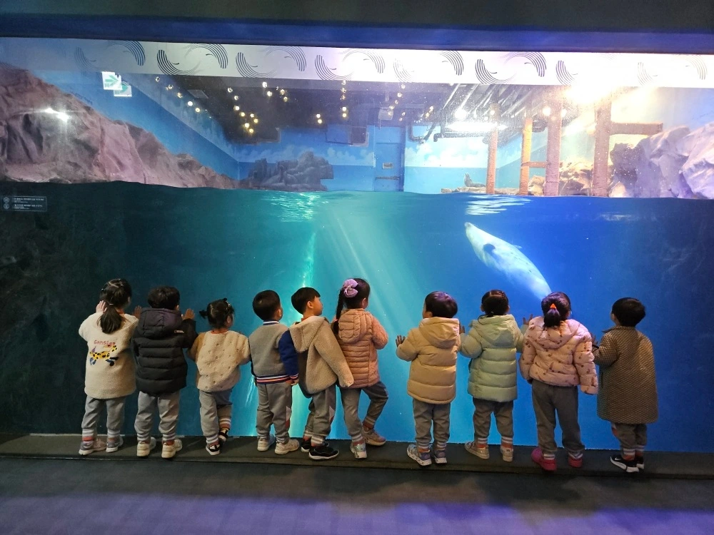 그리고 지난 목요일 허니반 친구들과 함께 잠실에 있는 아쿠아리움 시설을 견학하였습니다. 매년 한 번씩은 방문하는 곳이기에 허니는 별다른 두려움 없이 친구들과 함께 바다 생물들을 마음껏 관찰할 수 있었습니다. 다녀와서 관찰한 바다 친구들에 대해서 미주알고주알 배운 내용을 곁들여 이야기해 주는 허니의 모습이 인상적이었습니다. 자신이 보고 들은 경험을 엄마아빠에게 나름대로 유창하게 말할 수 있는 허니를 보니 많이 컸구나라는 생각을 하게 되었습니다.