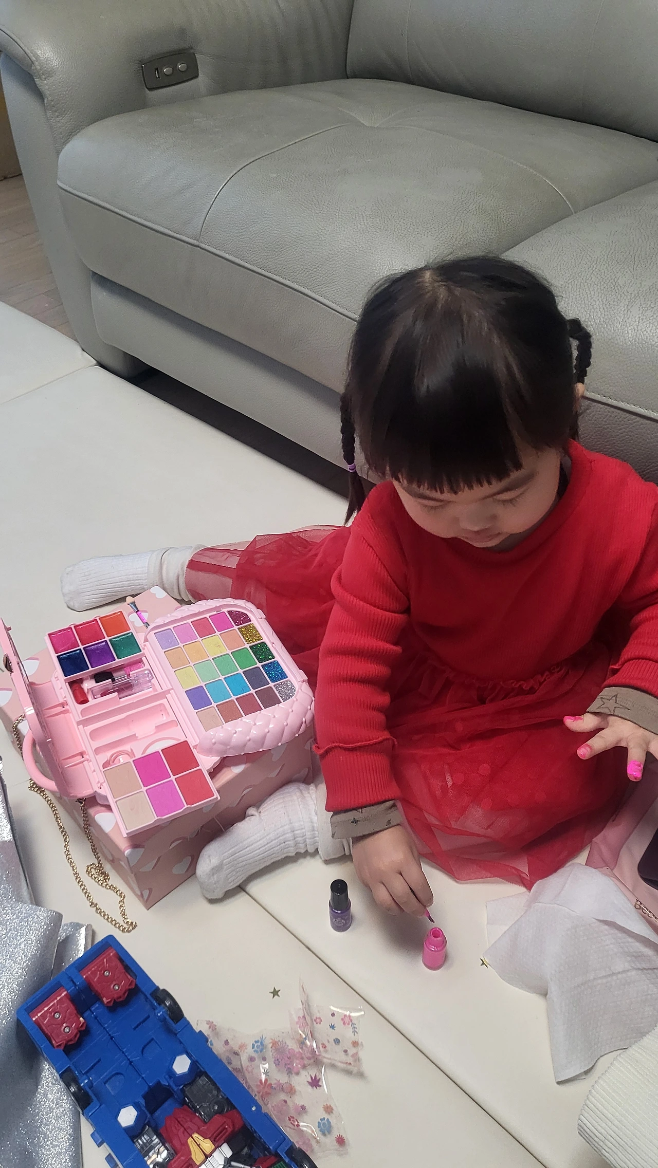 그리고 어찌 아셨는지 산타할아버지께서 허니와 달콤이가 그토록 가지고 싶어 했던 선물을 보내주셨습니다. 허니는 6단 합체까지 가능한 대형 로봇을 받았고 달콤이는 알록달록한 화장대 세트를 받았네요. 로봇은 홀로 조립이 어렵고 화장은 홀로 뒤처리가 어려운 관계로 저희 부부의 많은 도움이 필요할 것으로 보입니다. 산타할아버지. 그 정도는 할 수 있으니 염려 붙들어 매세요.