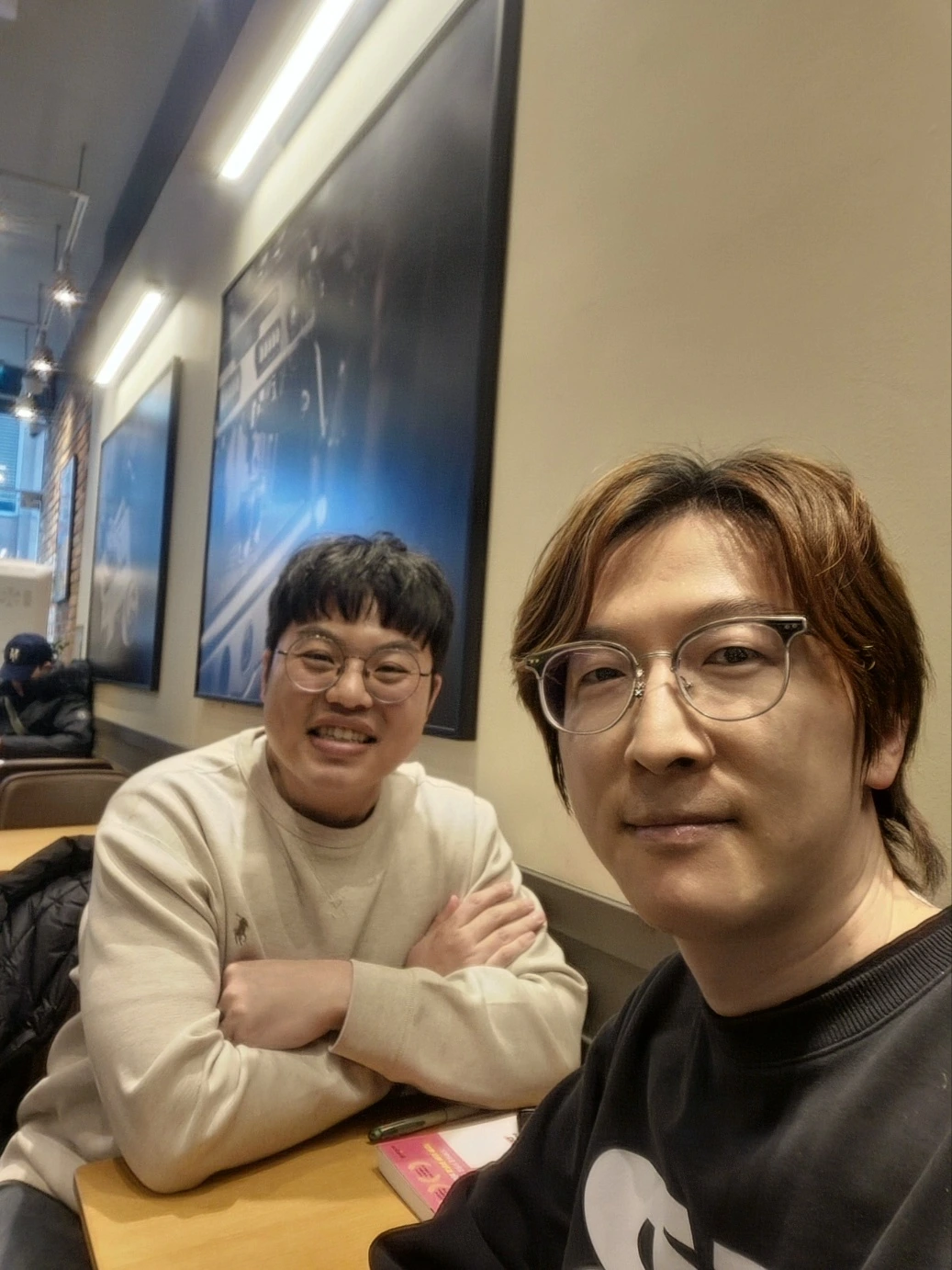 점심을 먹은 후에 카페로 자리를 옮겨 서로의 저서에 사인을 하는 영광도 누렸습니다. 저의 저서를 통해 많은 것을 배웠다는 작가님의 겸손과 배려에 긴장되었던 마음이 눈 녹듯 풀렸습니다. 작가님은 오랜 기간 학교 운영위원, 학부모회 운영, 아버지회 운영, 교육청 학폭 심의위원 등으로 교육계에서 꾸준히 이른바 '십잡스'로 활동하셨습니다. 그래서인지 교직에 몸을 담고 있는 저와 일맥상통하는 부분을 쉽게 찾을 수 있었습니다. 학교 업무의 고충에 대한 저의 속마음도 자연스레 말씀드리며 위로를 전해 받을 수도 있었고 스마트폰 사용 교육과 관련된 작가님의 소견을 들을 수 있어 여러모로 유익했던 시간이었습니다.