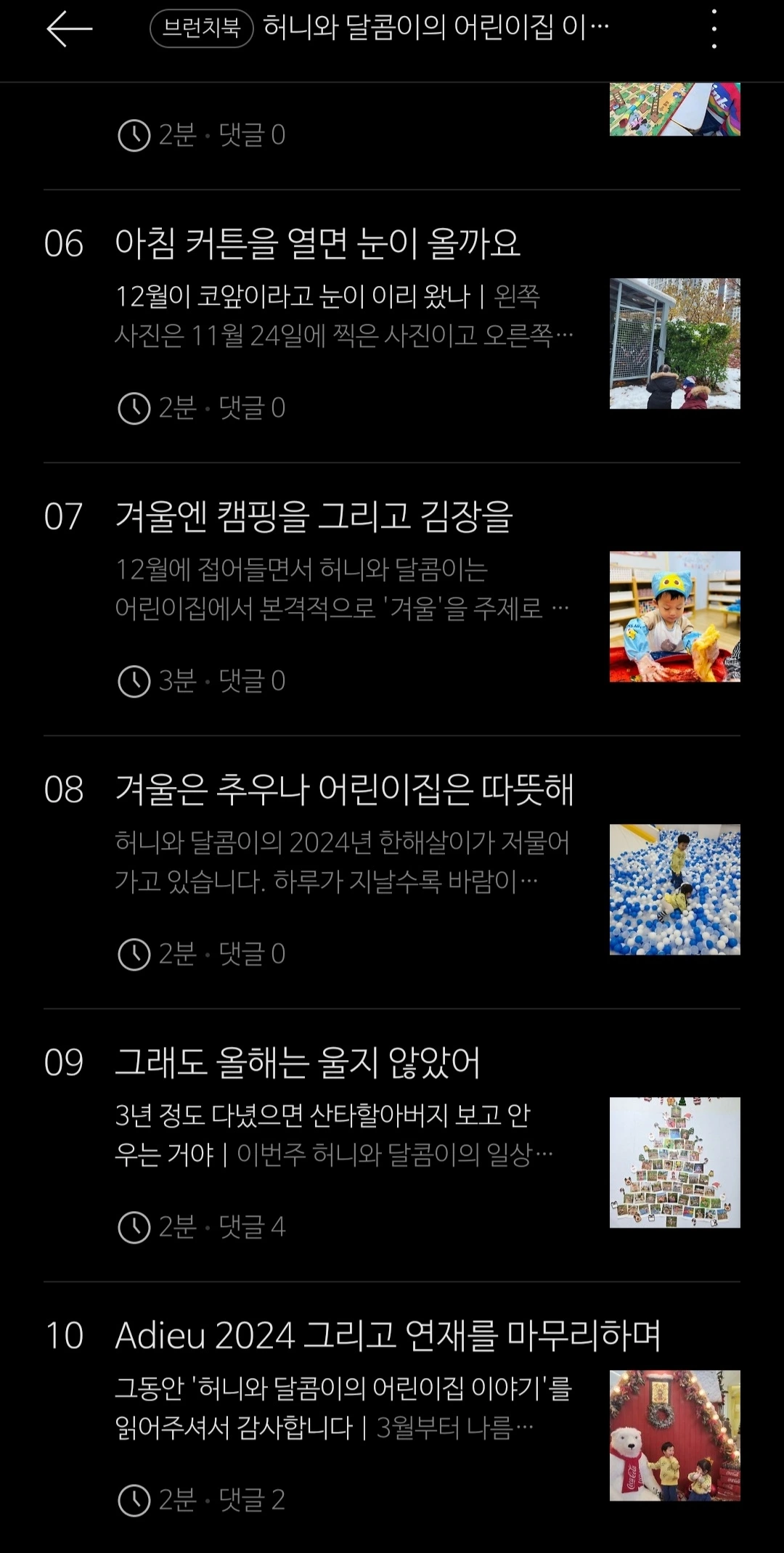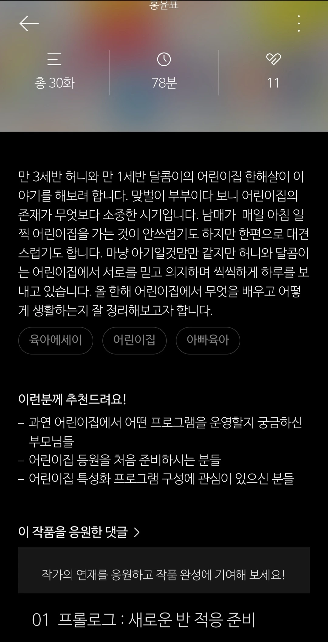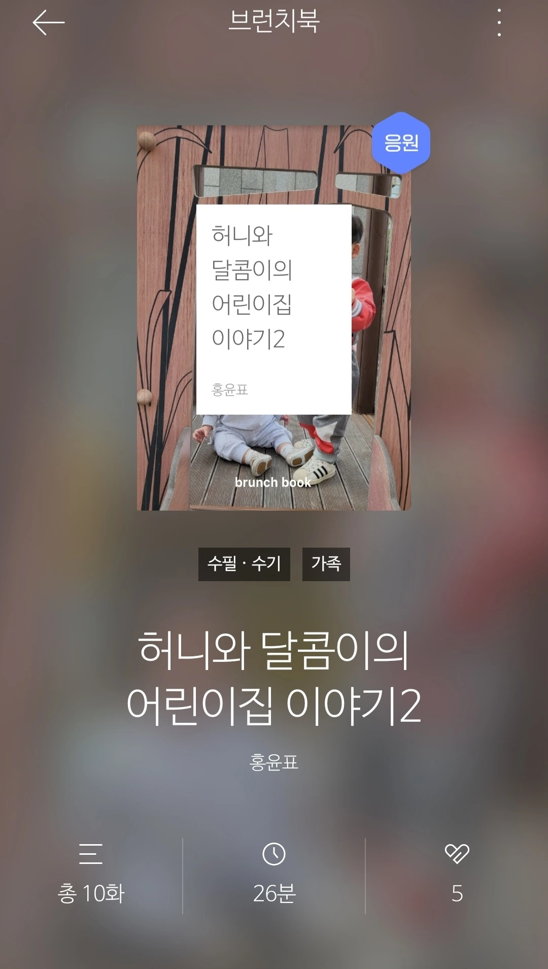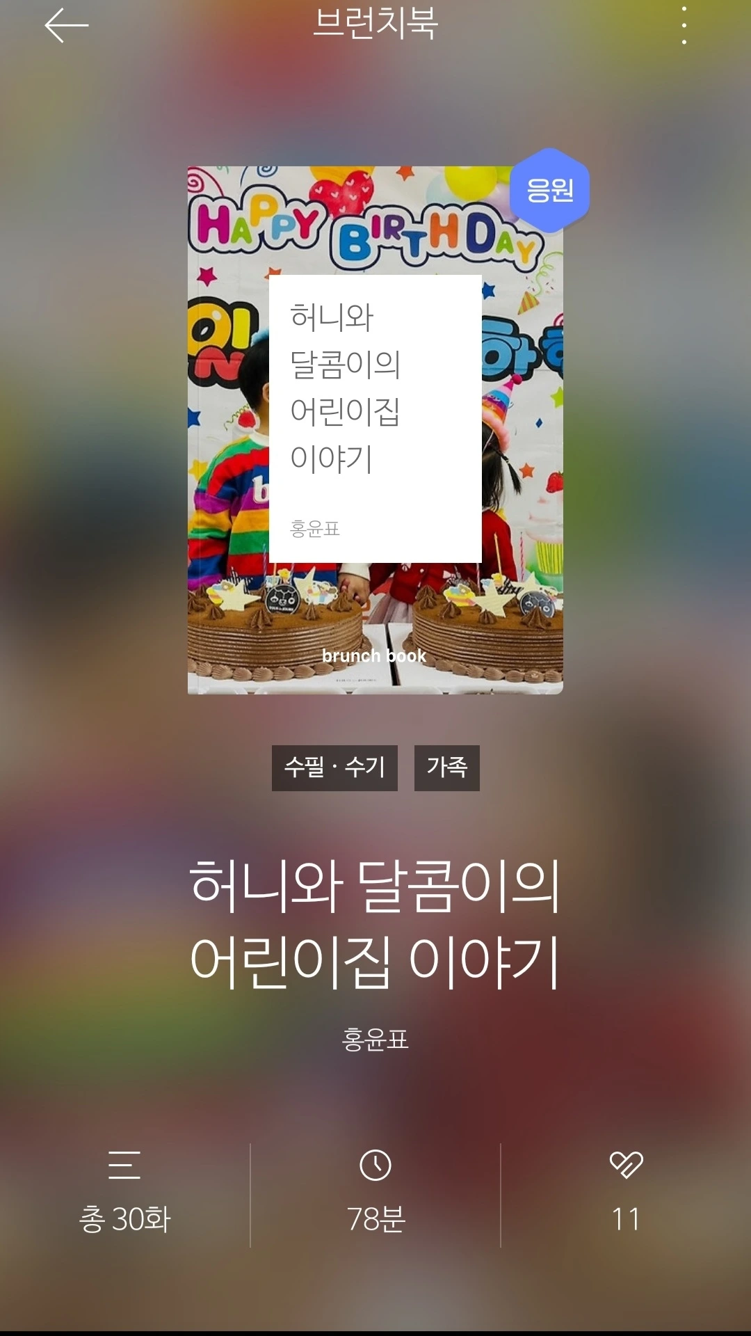2024년 4월부터 약 40주간 매주 토요일마다 만 3세 반 첫째 아들과 만 1세 반 둘째 딸의 어린이집 이야기를 꾸준히 써 내려왔습니다. 아이들이 어린이집에서 교육받는 모습을 '키즈노트'라는 어플을 통해 간접적으로 경험했고 그에 걸맞은 1년간의 교육 여정을 기록하는데 중점을 두었습니다. 제목은 '허니와 달콤이의 어린이집 이야기'라 지칭하고 매주 토요일 1편씩 연재를 해왔습니다. 제목이 저러한 이유는 첫째는 '허니반'에, 둘째는 '달콤반'에 배정되어 생활을 했기 때문이죠. 그런데 왜 속편이 존재하느냐고요? 왜냐하면 '브런치북' 1편의 최대 연재가 30편이 최대였기 때문입니다.