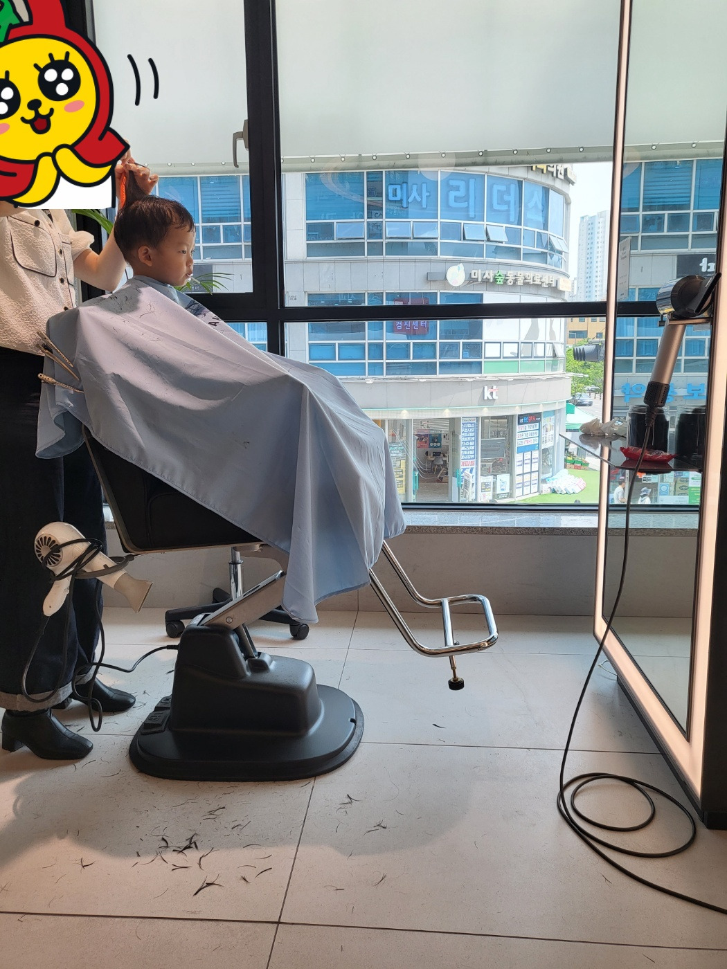 너무나 다소곳하게 마치 늘 있었던 일인 것처럼 자리에 바르게 앉아 이발을 하고 있는 것이 아닌가. 시간은 지나고 아이는 자란다지만 내가 생각했던 것보다 훨씬 더 많이 잘 자라고 있다는 게 느껴지는 순간이었다. 와이프는 이제 단둘이 가서 각자 스타일리스트를 예약한 다음 머리를 잘라도 될 거 같다고, 엄마아빠가 잠깐 눈에 안 보여도 괜찮을 것 같다고 얘기했다. 이렇게 내가 모르는 사이에 사회화가 잘 되어가고 있었군. 미용실 선생님이 늠름하다고 말하는 칭찬에 으쓱해했다는 말을 듣고 나름 우리 첫째가 대견해지는 순간이었다. 그럼 다음 미션은 '기저귀 떼고 팬티를 입는 것'과 '직접 화장실 가서 용변을 보는 것'이겠구나. 이것도 어느 순간 되겠지?