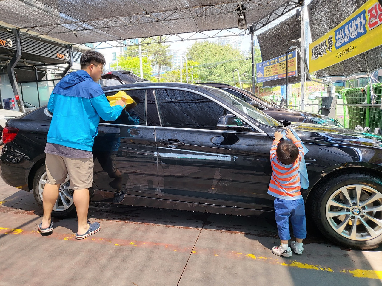 우리 첫째는 세차를 그렇게도 싫어한다. 자동식 세차기로 세차를 한 적이 딱 한번 있었는데 그 짧은 몇 분 동안 굉장히 무섭고 두려웠는지 닭똥 같은 눈물을 뚝뚝 흘리며 괴로워했다. 하물며 그렇게 좋아하고 사랑하는 아기상어 에피소드 중에서도 세차하는 이야기는 쳐다보지도 않았다. 우리 부부는 '자동식 세차기 말고 셀프세차를 한번 경험하게 해 볼까?'라는 의견에 합의했고 실행에 옮겼다. 차를 타고 인근 세차장으로 이동했다. 당연하다는 듯이 첫째는 경계했고 엄마 품에서 꼭 붙어 아빠가 세차하는 모습을 구경했다. 그래서 세차 말고 물기 제거하는 미션을 한번 스스로 해보도록 권유했고 "아빠 차가 지우 덕분에 깨끗해질 수 있어~!"라며 응원을 아끼지 않았다. 잠시 생각에 잠긴 첫째가 용기를 내서 아빠 차 세차를 도와주었고 굉장히 뿌듯하고 즐거워했다. 그리고 한마디. "오, 다음에 아빠 차 또 세차하러 가자!" 우리 식구는 이 한 마디에 모두 흐뭇해했다.