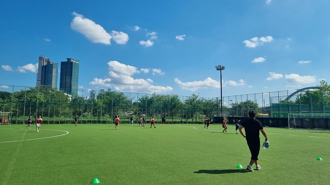 “잘했다. 정말 잘했어. 지금처럼 비어 있는 곳으로 뛰어 들어가고. 앞에서부터 압박하고. 뒷공간이 허용된다 싶으면 은서가 열심히 뛰어주면 돼. 그리고 효주야. 너 너무 지쳐 보인다. 조민아랑 교체.”