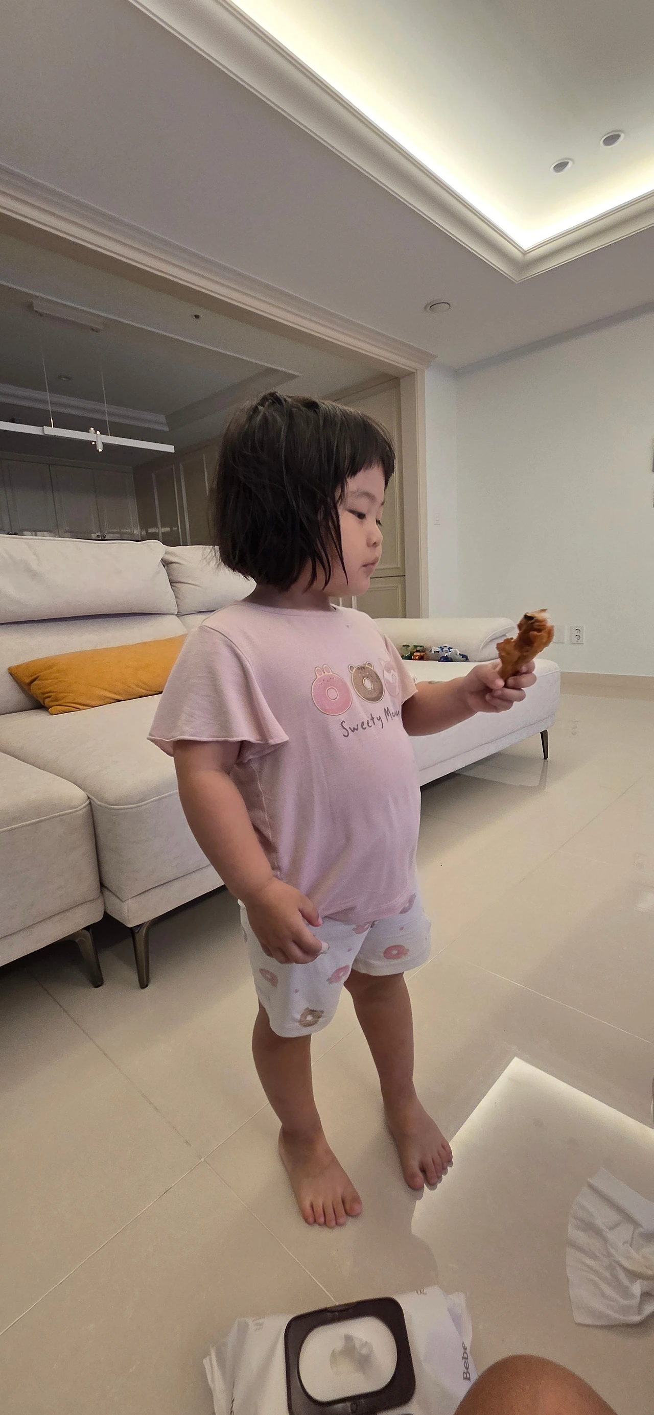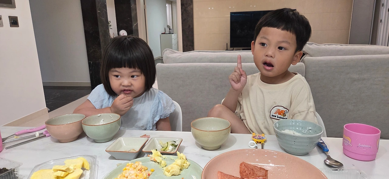 맞벌이 부부이다 보니 최대한 아이들이 먹고 싶은 음식을 만들어주고 있지만 이런 식의 리액션은 부모 입장에서 기분이 썩 그리 좋지만은 않습니다. 유치원이나 어린이집에서는 누구보다 급식을 잘 먹는 아이인지라 '그래, 밖에서 사회생활 열심히 하고 있구나.' 라며 최대한 이해하긴 하지만 그게 올바른 교육인지는 의심해 볼 문제가 있습니다. 더군다나 예전에는 잘 먹지 않던 치킨, 피자 등의 배달음식에 눈을 떴는지 틈만 나면 배달시켜 달라고 합니다. 첫째는 그렇다 치더라도 둘째는 아직 좀 더 어린데 또래 아이들보다 체중이 많이 나가 관리의 필요성도 다분히 있기 때문이죠.