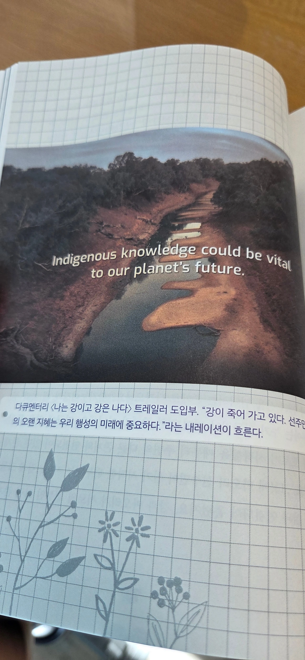 뉴질랜드의 '황거누이강'의 사례는 세계 최초로 '강'에게 인간이나 회사가 가지는 법적 지위를 부여한 최초의 사건입니다. 인권이 침해받은 경우 법의 심판을 통해 구제를 하듯이 생태계에게도 똑같이 법적인 보호장치를 부여한 셈이지요. 특히 이 문장이 신비하게 와닿습니다.