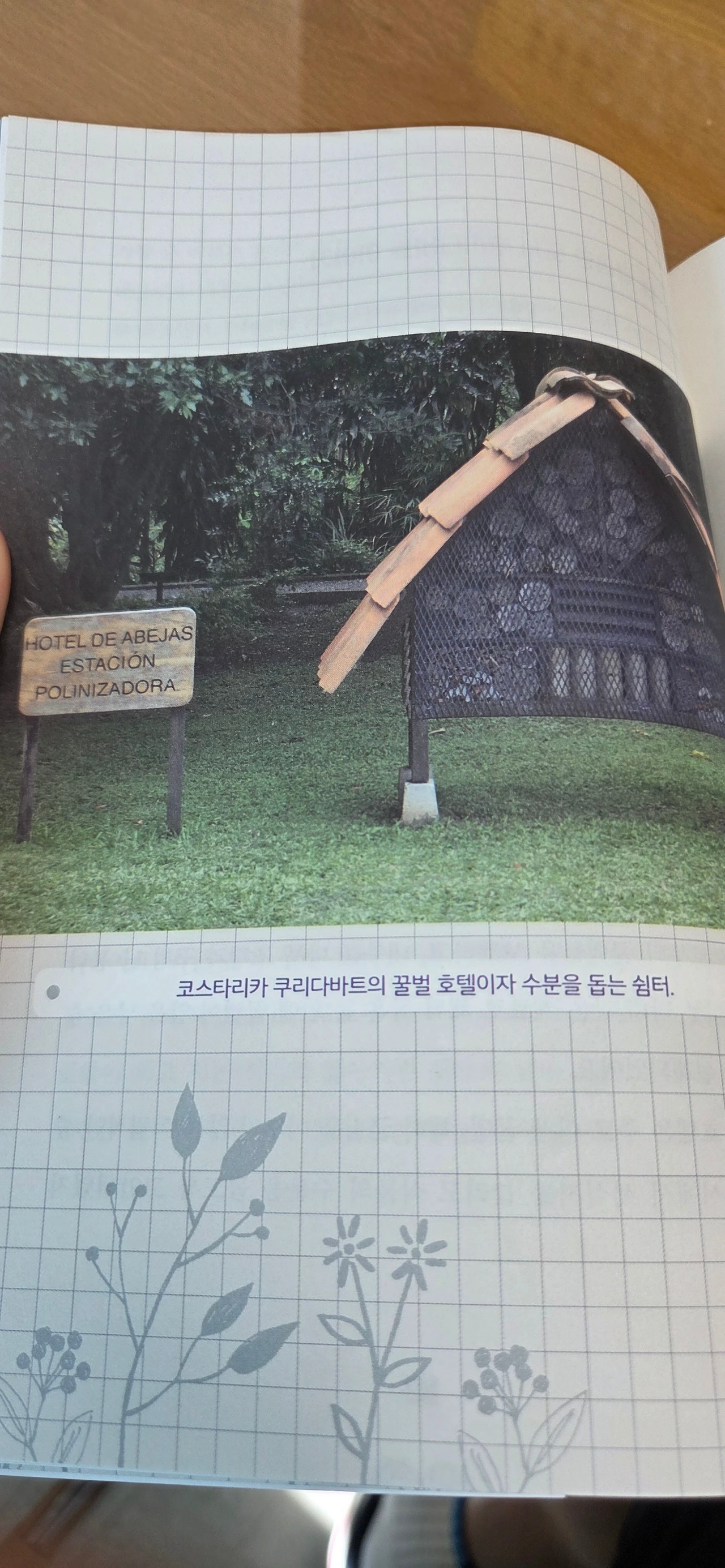 얼마 전에 저도 '세계 꿀벌의 날'을 과학시간에 학생들에게 지도한 적이 있습니다. 꿀벌 한 마리가 매일 해내는 수분(꽃가루받이)이 생태계를 유지하는 데 지대한 영향을 끼치고 있다는 사실을 강조하면서 꿀벌의 개체 수를 유지하는 데 많은 노력을 기울여야 한다는 것을 말이죠. 책에서는 코스타리가 쿠리디바트의 꿀벌 호텔을 사례로 제시하여 세계 각지에서 꿀벌을 지키려는 노력의 하나로 소개하고 있습니다. 결국 생태계를 교란하고 멸종위기의 식물, 동물을 발생시키는 주범은 다름 아닌 인간이라는 것을 다시 한번 상기하게 됩니다.