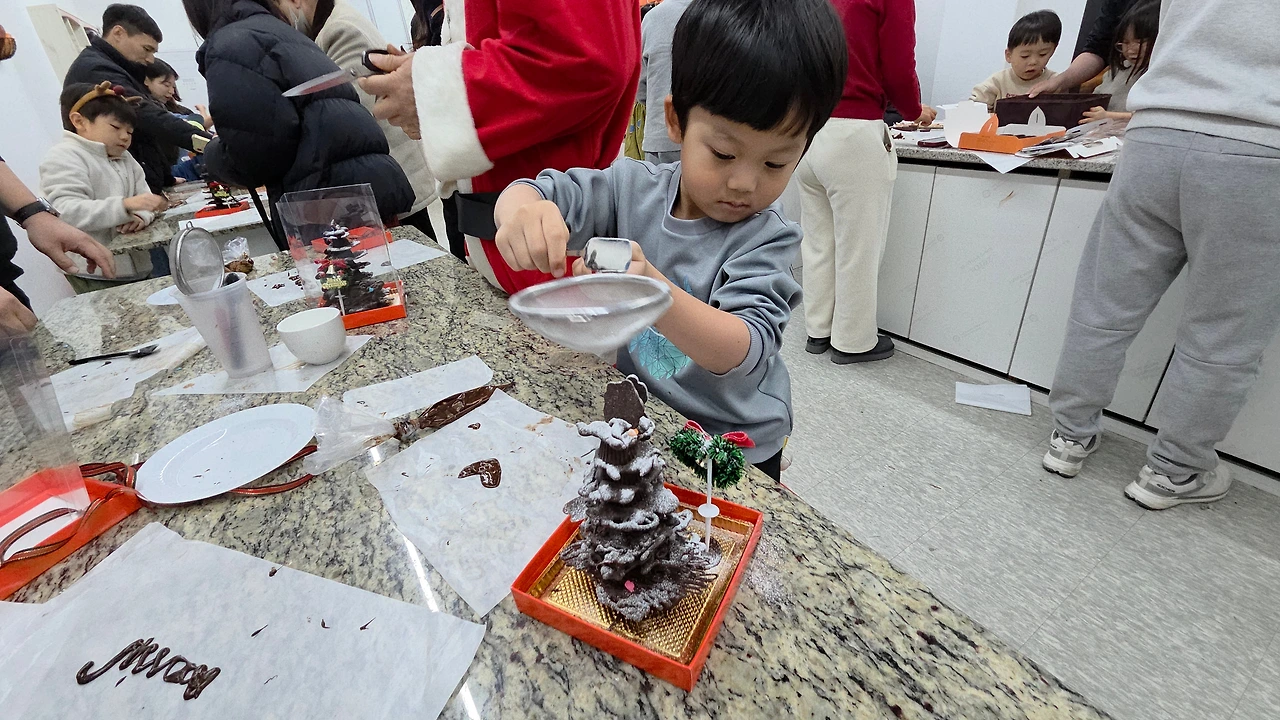 이대로 끝내기 다소 아쉬워 식사를 하고 집에서 멀지 않은 곳에 위치한 '초콜릿박물관'을 방문해 초콜릿 크리스마스트리 만들기 체험도 하였습니다. 크리스마스 당일이라 그런지 방문한 가족이 많아 다소 프로그램 운영이 원활하게 되지 않는 것이 느껴져 아쉬웠습니다. 그래도 좋은 날인 만큼 내색 하나 않고 차분히 기다려 결국 트리를 예쁘게 완성해 냈습니다. 부모의 도움이 다소 필요했지만 아이들은 자기 스스로 장식도 꾸미고 트리 설치도 야무지게 잘 해냈죠. 24시간 뒤 먹으라는 미션도 인내심을 갖고 잘 지켜 냈고요.