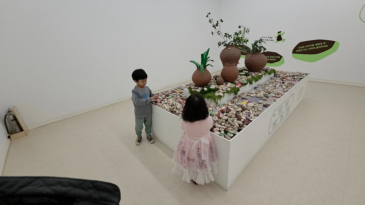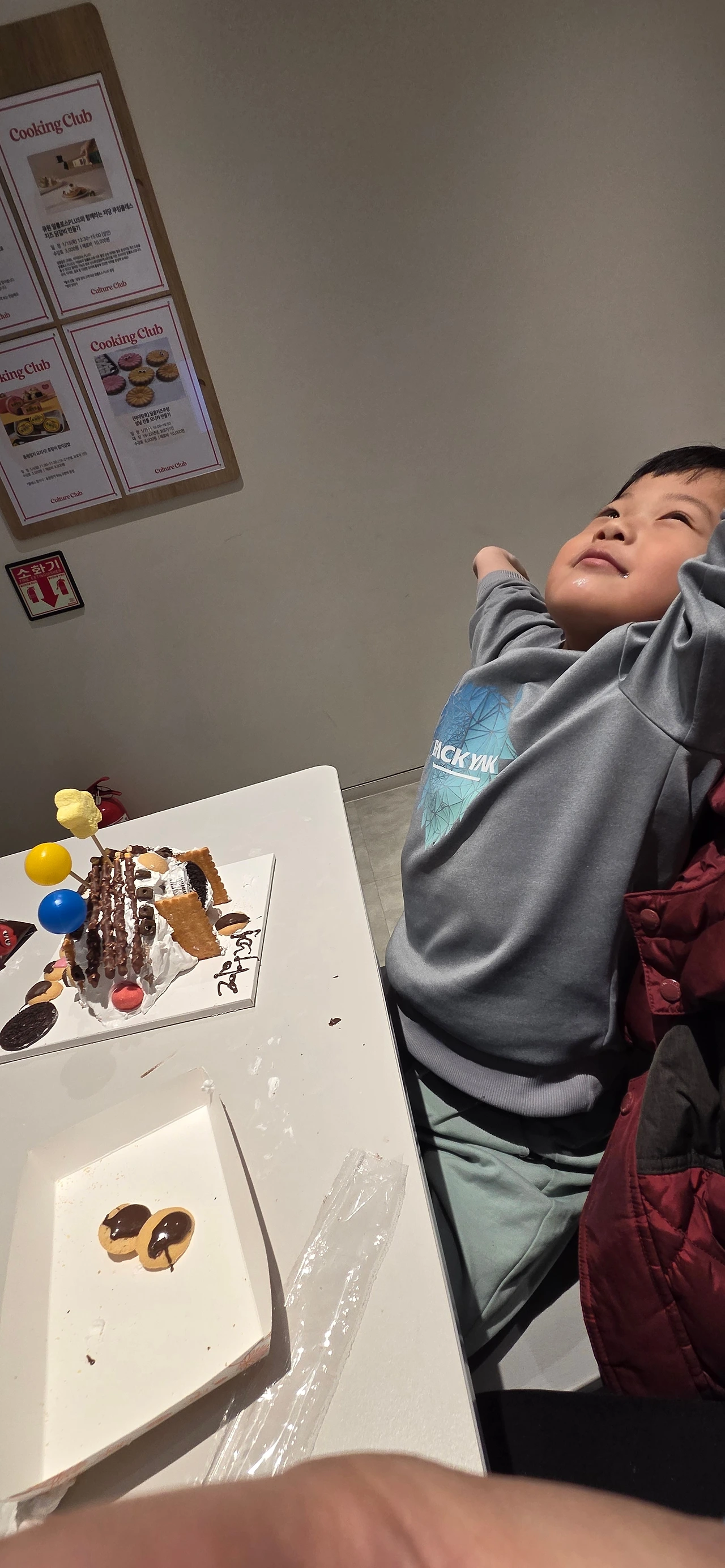 대망의 셋째 날, 오늘은 스케줄이 다소 빡빡하게 계획되어 있었습니다. 오전 시간에는 '경기북부어린이박물관'을 방문하고 엄마가 퇴근한 이후에는 동네 문화센터에서 '과자집 만들기' 수업이 있었기 때문이죠. 그리하여 아이들은 아빠와 함께 이른 아침부터 동두천에 있는 '경기북부어린이박물관'에서 여러 가지 체험을 하였습니다. 고인돌의 도시답게 돌을 주제로 한 전시가 기획되어 있었고 아이들은 직접 돌을 만지고 색깔을 탐구하는 시간을 가졌습니다. 그렇게 2시간여를 이곳저곳 둘러보면서 다양한 체험을 하고 점심을 먹은 뒤 곧바로 DIY과자집 만들기 수업에 합류했습니다. 생크림으로 빵을 도포한뒤 주어진 과자로 자신만의 케이크를 만들며 아이들은 매우 즐거워하였습니다. 저는 첫째 옆에서 전담마크를 했는데 자기 케이크를 다 만들고 굉장히 뿌듯해하는 첫째의 모습이 인상적이었습니다.