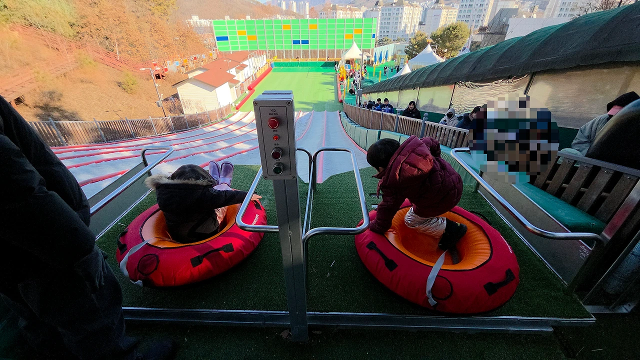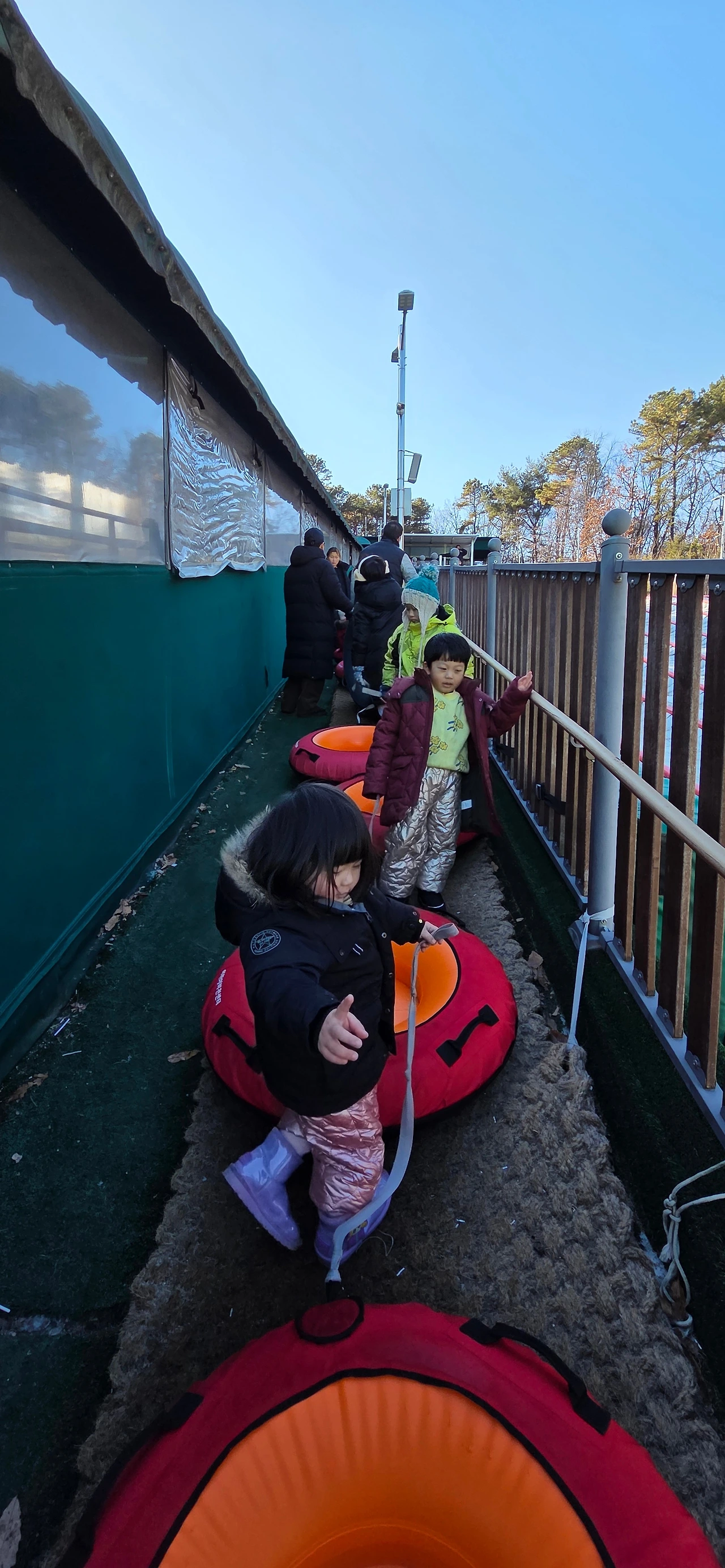 그렇게 수영장에서의 즐거운 하루를 마치고 다음 날, 영하 7도가 넘는 날씨 속에서 저는 아이들과 함께 '사계절썰매장'을 다녀왔습니다. 이미 3~4번의 경험이 있어 아이들은 썰매를 타는 행위에 대해 두려움이나 어색한 모습을 보이지는 않았습니다. 그래서 저는 하나의 레벨 업 시간을 가져보기로 했죠. 바로 '스스로 썰매 타고 정리하기' 말입니다. 이전에는 제가 항상 썰매를 같이 타면서 뒷정리까지 함께 해주었는데 오늘은 뒤에서 따라만 다닐 뿐 모든 놀이의 시작과 끝은 아이들이 하도록 했습니다. 이제 한 살 더 먹은 것을 증명해보려고 했을까요. 아이들은 몇 번을 오르내리는 동안 지겨워하는 모습 하나 없이 90분간 썰매를 즐겁게 타고 집으로 돌아왔습니다.