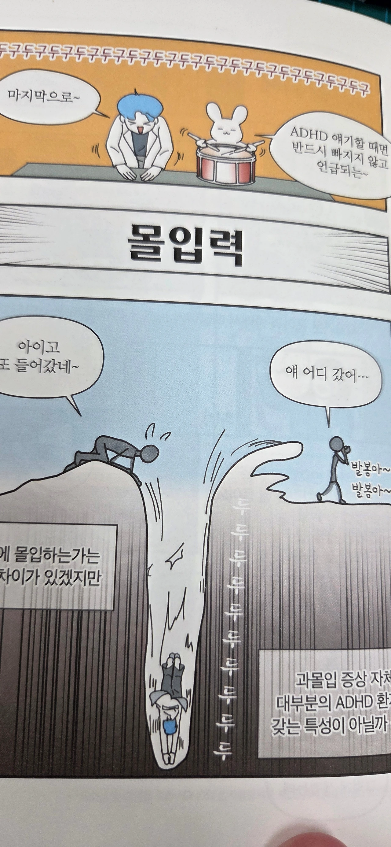 ADHD가 꼭 단점만 가지고 있는 것이 아니라는 것은 그와 관련된 인물들의 삶과 이야기를 추적해 보면 알 수 있다. ADHD를 갖고 있는 의사 제프 카프가 대표적인 사례라고 할 수 있는데 그는 주의력결핍과 산만함이 '몰입'의 정수로서 작용함을 주목하였고 12가지로 분류해 『릿LIT, 완전한 몰입』이라는 책을 완성했다. 비스카차 작가도 마찬가지로 ADHD의 핵심 특징은 몰입력이며 이러한 과몰입이라는 특성이 조절과 적응이란 키워드를 잘 만나며 엄청난 시너지 효과를 만들어 낼 수 있다고 하였다. 수년 전 교실로 돌아가, 우리 반 ADHD 학생을 돌이켜보면 일리가 있는 말이라고 생각이 들었다. 유난히 만화를 그리는 것을 좋아했던 그 아이는 지금은 어떤 삶을 살고 있을지 문득 궁금해졌다. 혹시 몇 년 뒤에 매스컴에서 만날 수도 있지 않을까. 그럼 참 반가울 것 같다.